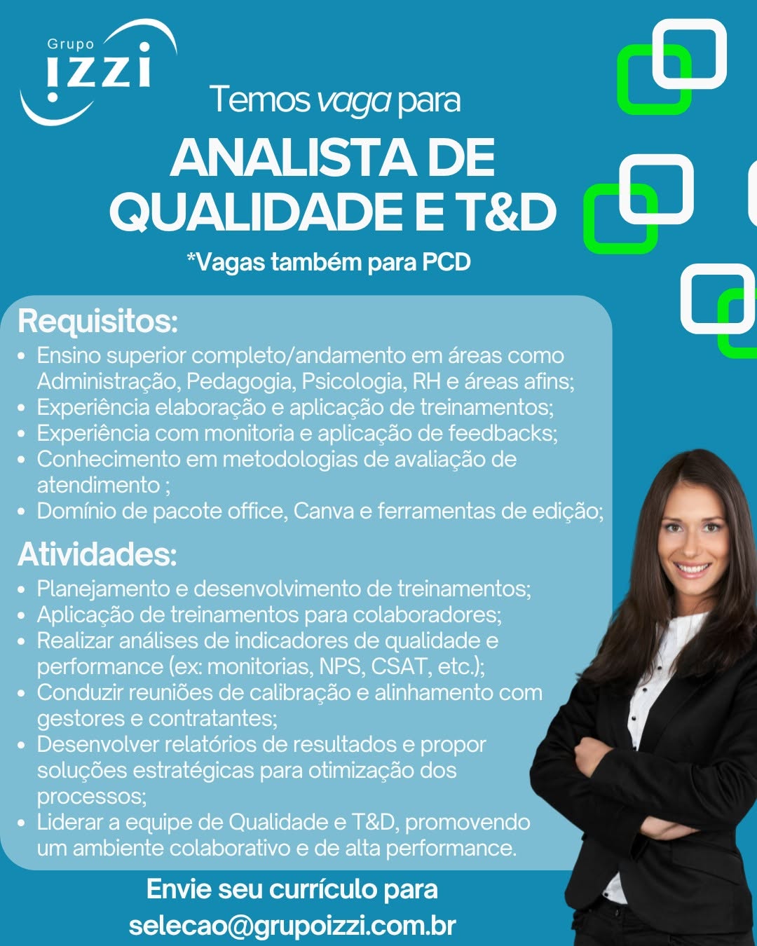 Nós não somos agência de empregos, não cobramos nada, nem antes e nem depois de você conseguir o seu emprego. Não somos nós que realizamos a seleção de currículos, também não realizamos entrevistas. Não nos responsabilizamos pelo envio de currículos. O envio de currículo deverá ser realizado pela pessoa interessada no e-mail que estiver na vaga.