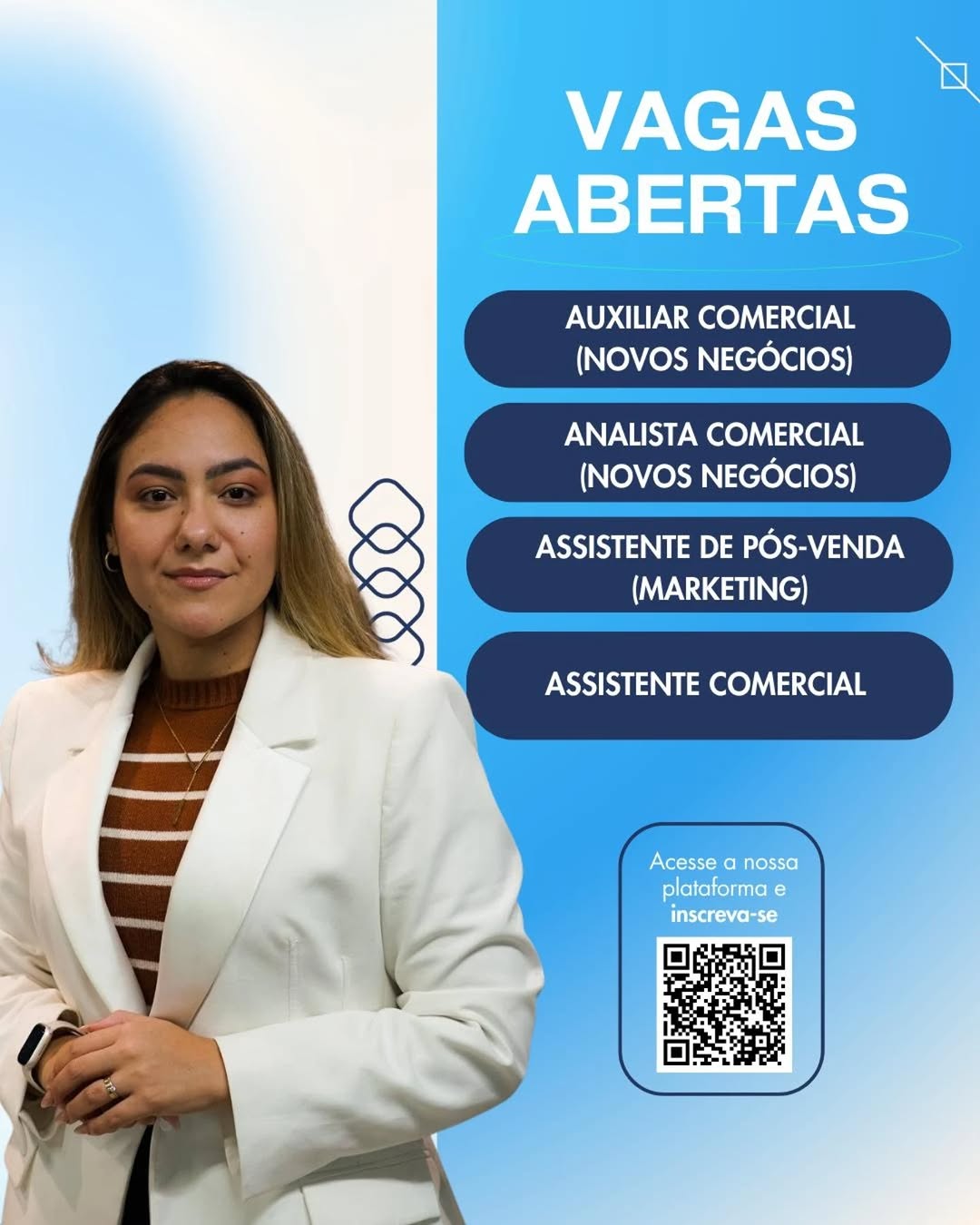 Auxiliar Comercial, Analista Comercial, Assistente de Pós-venda, Assistente Comercial, Estágio em Marketing, Assistente de Marketing, Analista de Marketing