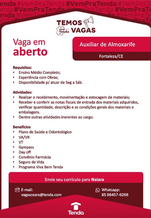 As vagas são divulgadas da mesma forma que recebemos. Não nos responsabilizamos pelas vagas, nem pelas informações fornecidas referente as mesmas, também não nos responsabilizamos pela idoneidade das empresas e instituições, apenas divulgamos as vagas que recebemos. Alertamos à buscar informações sobre as empresas que estão disponibilizando as vagas, através de contato por telefone ou e-mail divulgados nas mesmas, além de pesquisar na internet ou outros meios. Tome muito cuidado com locais (empresas ou instituições) que cobram taxas para garantir vagas ou para garantir uma colocação no mercado de trabalho. Esteja atento (a) a localização (endereço) da entrevista e do local de trabalho, se não conhecer ou achar que é um lugar isolado, vá com uma companhia ou não vá. Ter um emprego para garantir seu sustento e de sua família é importante, mas sua segurança e integridade também é, por isso, esteja atento. Se você é menor de idade vá acompanhado (a) de um (a) responsável.