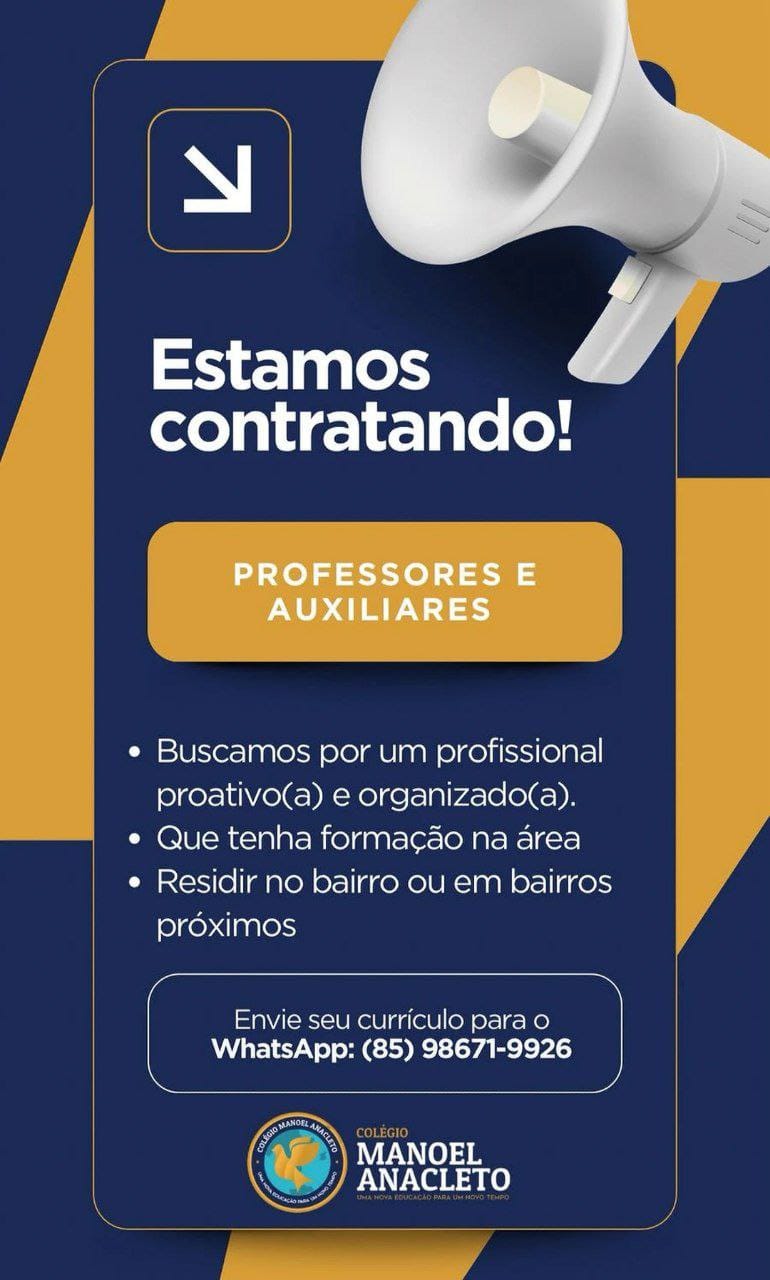 Auxiliar de Cozinha, Auxiliar Administrativo, Operador de Caixa, Professor de Educação Infantil, Auxiliar de Professor, Estágio em Enfermagem, Vendedor(a), Enfermeiro(a) do Trabalho