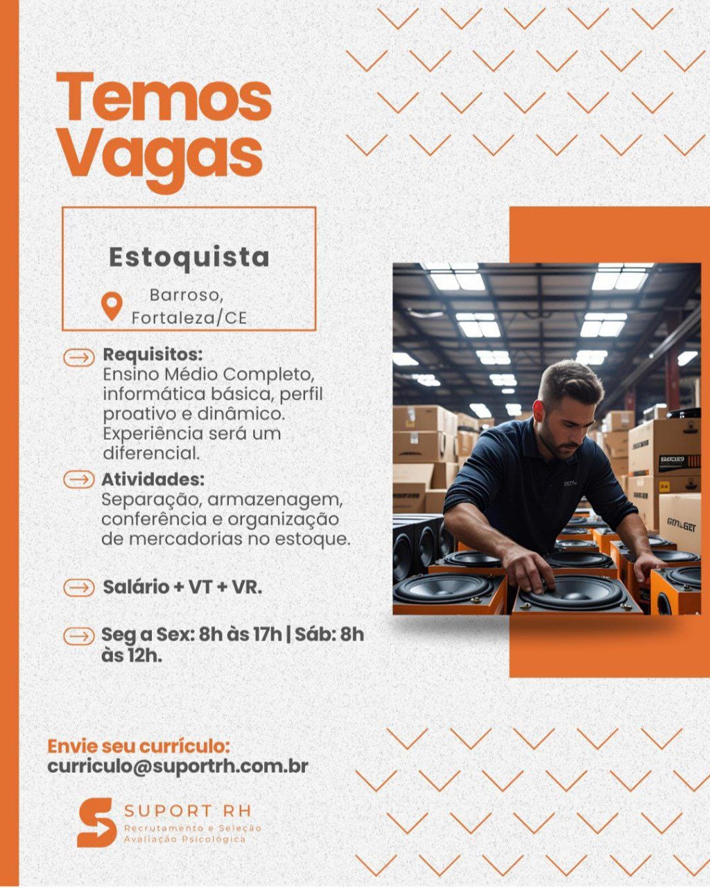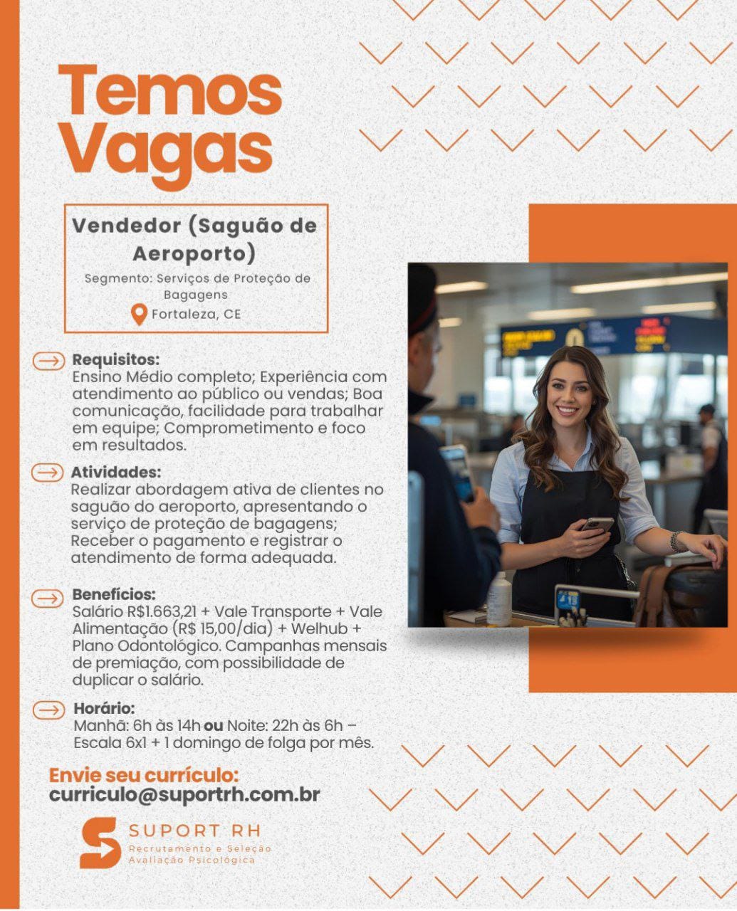 Auxiliar de Cozinha, Estoquista, Motorista, Auxiliar de Designer Gráfico, Operador(a) de Loja, Vendedor Aeroporto