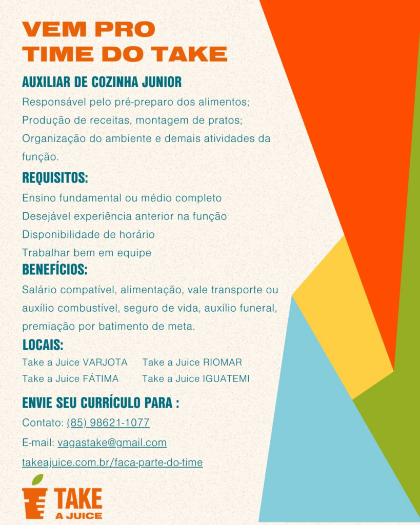 Nós não somos agência de empregos, não cobramos nada, nem antes e nem depois de você conseguir o seu emprego. Não somos nós que realizamos a seleção de currículos, também não realizamos entrevistas. Não nos responsabilizamos pelo envio de currículos. O envio de currículo deverá ser realizado pela pessoa interessada no e-mail que estiver na vaga.