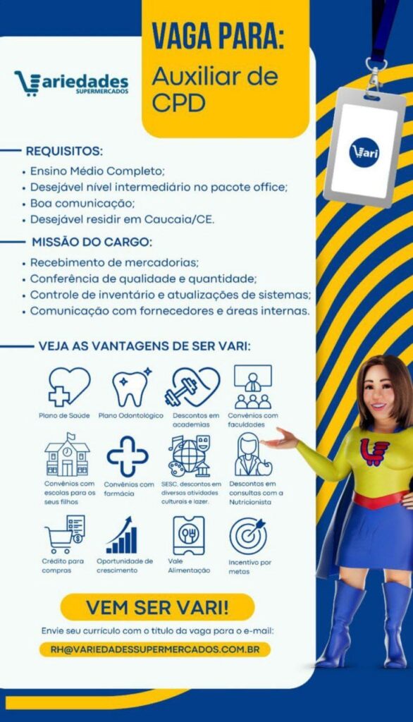 As vagas são divulgadas da mesma forma que recebemos. Não nos responsabilizamos pelas vagas, nem pelas informações fornecidas referente as mesmas, também não nos responsabilizamos pela idoneidade das empresas e instituições, apenas divulgamos as vagas que recebemos. Alertamos à buscar informações sobre as empresas que estão disponibilizando as vagas, através de contato por telefone ou e-mail divulgados nas mesmas, além de pesquisar na internet ou outros meios. Tome muito cuidado com locais (empresas ou instituições) que cobram taxas para garantir vagas ou para garantir uma colocação no mercado de trabalho. Esteja atento (a) a localização (endereço) da entrevista e do local de trabalho, se não conhecer ou achar que é um lugar isolado, vá com uma companhia ou não vá. Ter um emprego para garantir seu sustento e de sua família é importante, mas sua segurança e integridade também é, por isso, esteja atento. Se você é menor de idade vá acompanhado (a) de um (a) responsável.