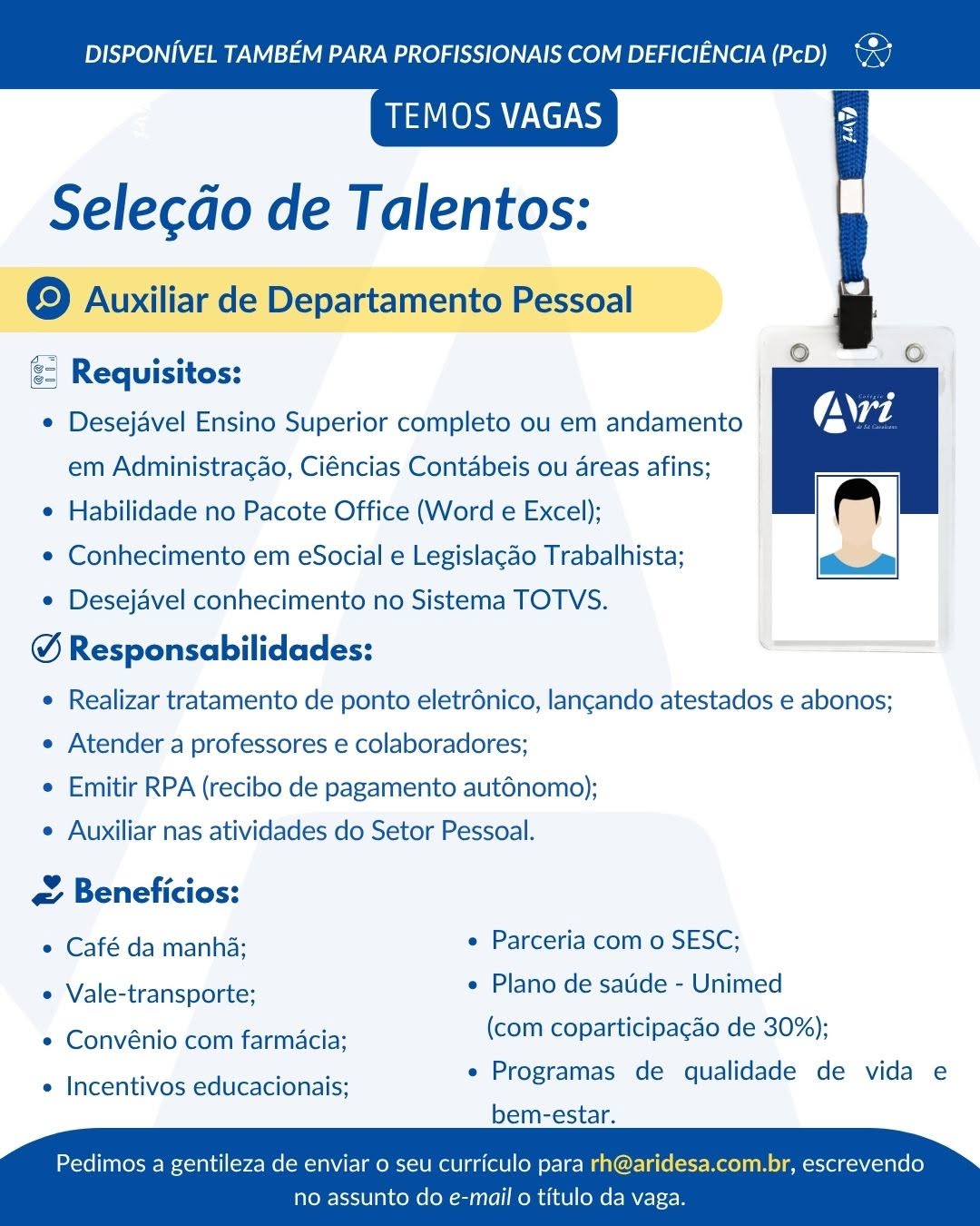 Auxiliar de Departamento Pessoal | Técnico(a) de Enfermagem