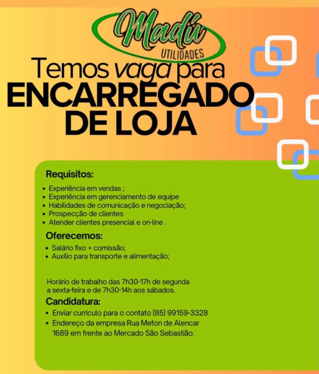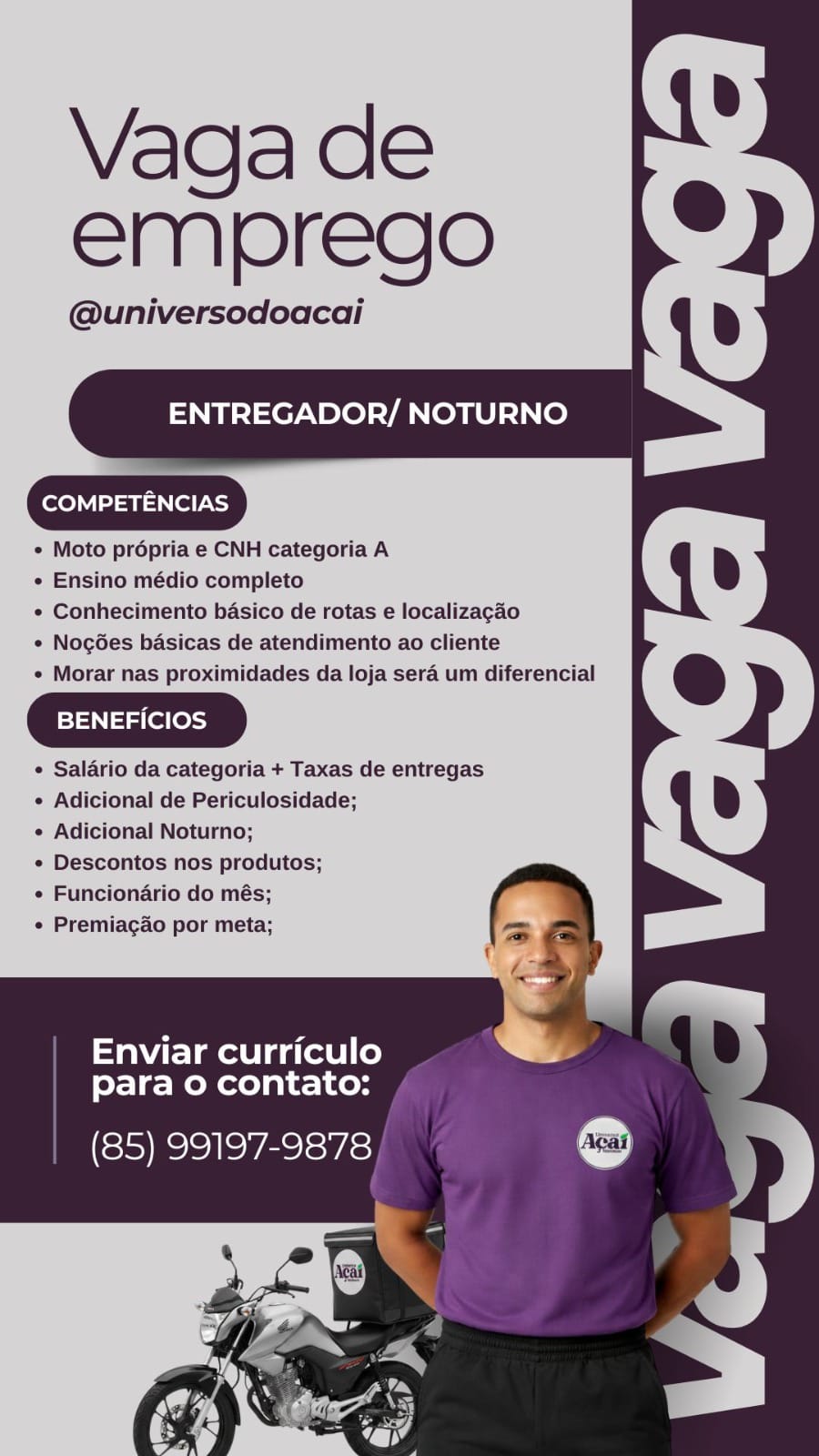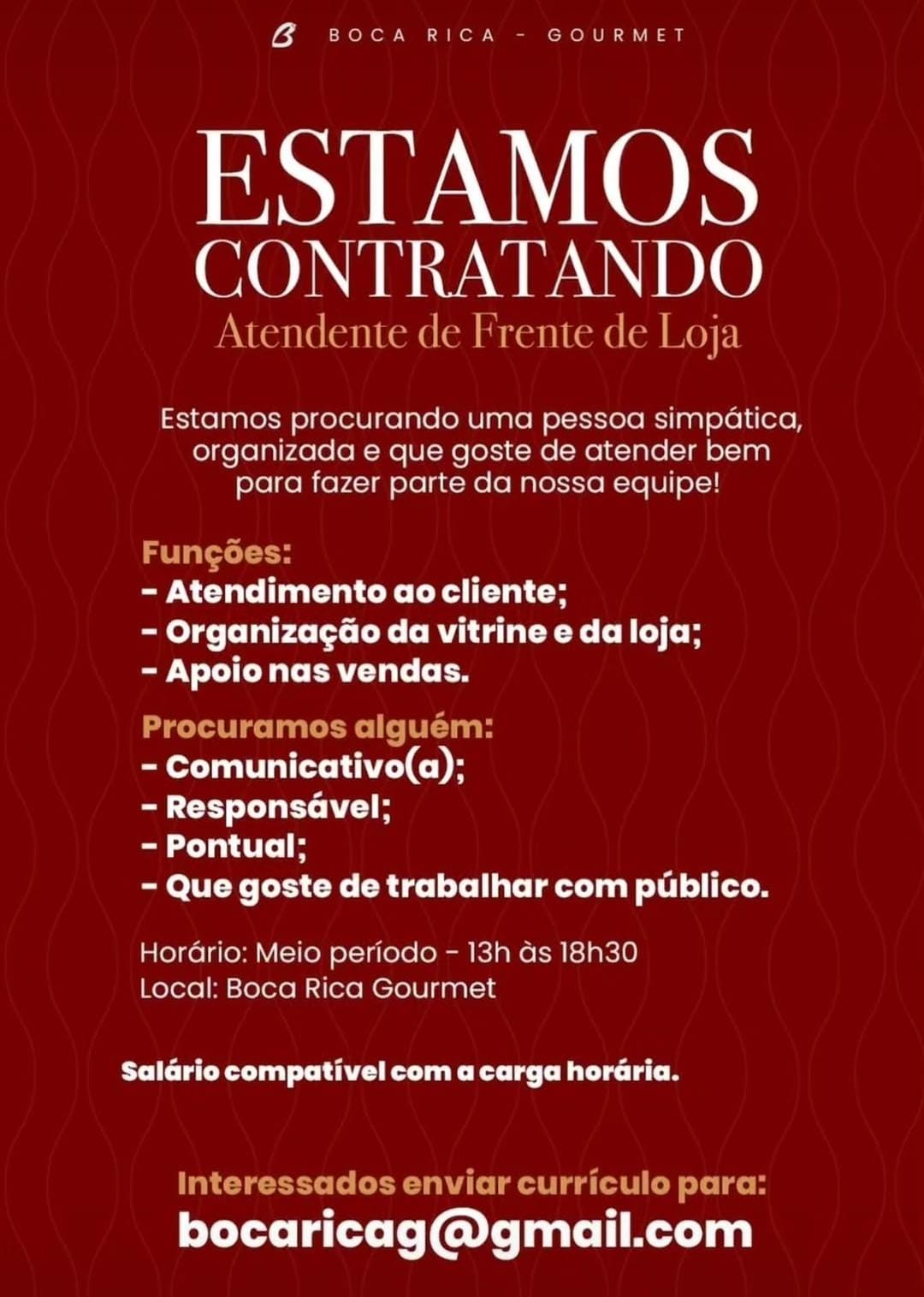 Auxiliar de Floricultura, Porteiro(a), Entregador Noturno, Atendente de Bar, Chapeiro, Operador de Caixa, Garçom, Atendente, Encarregado de Loja, Açougueiro, Entregador, Líder de Frios, Operador de Caixa, Repositor, Cumim, Auxiliar de Serviços Gerais, Professora do Fundamental, Operador de Monitoramento, Atente de Frente de Loja,