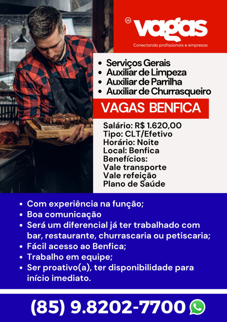 As vagas são divulgadas da mesma forma que recebemos. Não nos responsabilizamos pelas vagas, nem pelas informações fornecidas referente as mesmas, também não nos responsabilizamos pela idoneidade das empresas e instituições, apenas divulgamos as vagas que recebemos. Alertamos à buscar informações sobre as empresas que estão disponibilizando as vagas, através de contato por telefone ou e-mail divulgados nas mesmas, além de pesquisar na internet ou outros meios. Tome muito cuidado com locais (empresas ou instituições) que cobram taxas para garantir vagas ou para garantir uma colocação no mercado de trabalho. Esteja atento (a) a localização (endereço) da entrevista e do local de trabalho, se não conhecer ou achar que é um lugar isolado, vá com uma companhia ou não vá. Ter um emprego para garantir seu sustento e de sua família é importante, mas sua segurança e integridade também é, por isso, esteja atento. Se você é menor de idade vá acompanhado (a) de um (a) responsável.
