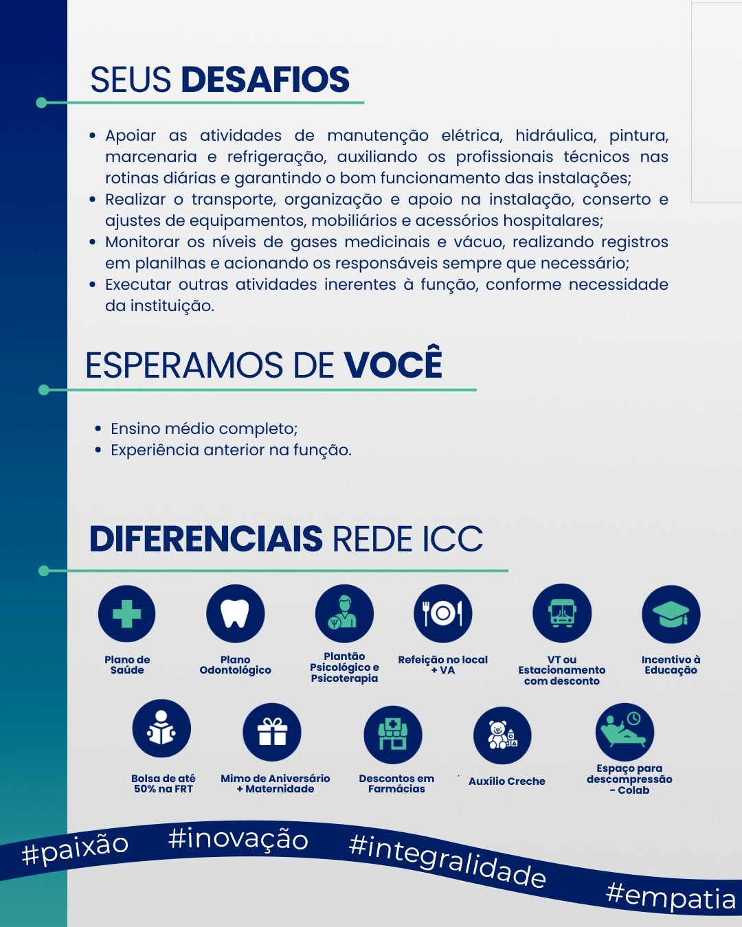 As vagas são divulgadas da mesma forma que recebemos. Não nos responsabilizamos pelas vagas, nem pelas informações fornecidas referente as mesmas, também não nos responsabilizamos pela idoneidade das empresas e instituições, apenas divulgamos as vagas que recebemos. Alertamos à buscar informações sobre as empresas que estão disponibilizando as vagas, através de contato por telefone ou e-mail divulgados nas mesmas, além de pesquisar na internet ou outros meios. Tome muito cuidado com locais (empresas ou instituições) que cobram taxas para garantir vagas ou para garantir uma colocação no mercado de trabalho. Esteja atento (a) a localização (endereço) da entrevista e do local de trabalho, se não conhecer ou achar que é um lugar isolado, vá com uma companhia ou não vá. Ter um emprego para garantir seu sustento e de sua família é importante, mas sua segurança e integridade também é, por isso, esteja atento. Se você é menor de idade vá acompanhado (a) de um (a) responsável.