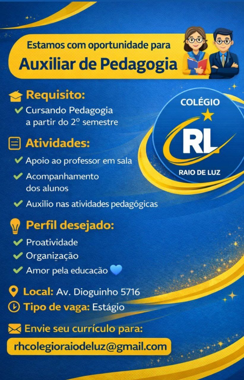 Não nos responsabilizamos pelas vagas, nem pelas informações fornecidas referente as mesmas, também não nos responsabilizamos pela idoneidade das empresas e instituições, apenas divulgamos as vagas que recebemos. Alertamos à buscar informações sobre as empresas que estão disponibilizando as vagas, através de contato por telefone ou e-mail divulgados nas mesmas, além de pesquisar na internet ou outros meios. Tome muito cuidado com locais (empresas ou instituições) que cobram taxas para garantir vagas ou para garantir uma colocação no mercado de trabalho. Esteja atento (a) a localização (endereço) da entrevista e do local de trabalho, se não conhecer ou achar que é um lugar isolado, vá com uma companhia ou não vá. Ter um emprego para garantir seu sustento e de sua família é importante, mas sua segurança e integridade também é, por isso, esteja atento. Se você é menor de idade vá acompanhado (a) de um (a) responsável.