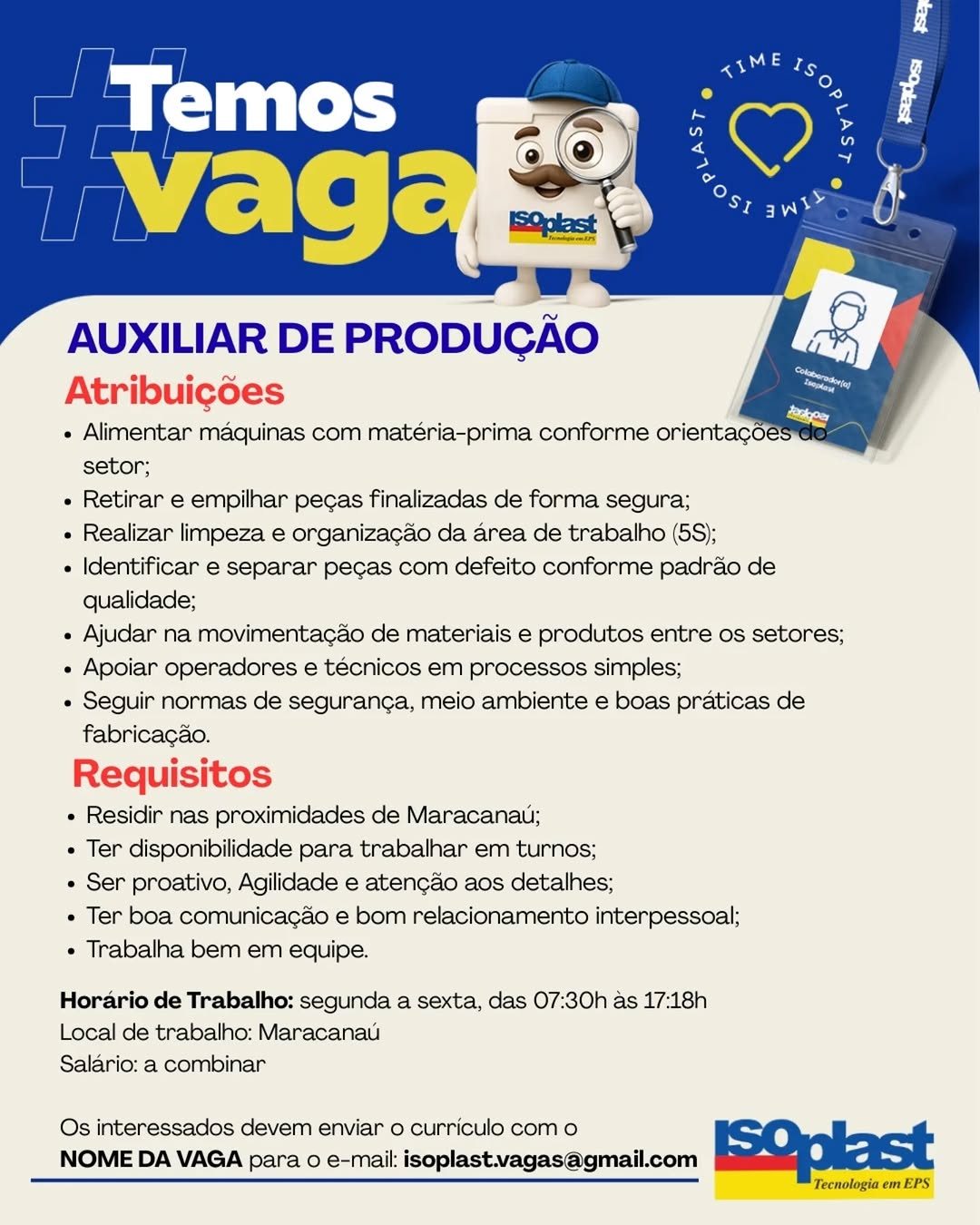 Não nos responsabilizamos pelas vagas, nem pelas informações fornecidas referente as mesmas, também não nos responsabilizamos pela idoneidade das empresas e instituições, apenas divulgamos as vagas que recebemos. Alertamos à buscar informações sobre as empresas que estão disponibilizando as vagas, através de contato por telefone ou e-mail divulgados nas mesmas, além de pesquisar na internet ou outros meios. Tome muito cuidado com locais (empresas ou instituições) que cobram taxas para garantir vagas ou para garantir uma colocação no mercado de trabalho. Esteja atento (a) a localização (endereço) da entrevista e do local de trabalho, se não conhecer ou achar que é um lugar isolado, vá com uma companhia ou não vá. Ter um emprego para garantir seu sustento e de sua família é importante, mas sua segurança e integridade também é, por isso, esteja atento. Se você é menor de idade vá acompanhado (a) de um (a) responsável.