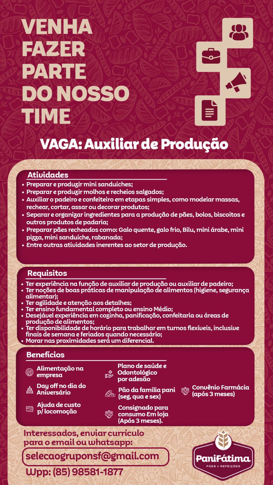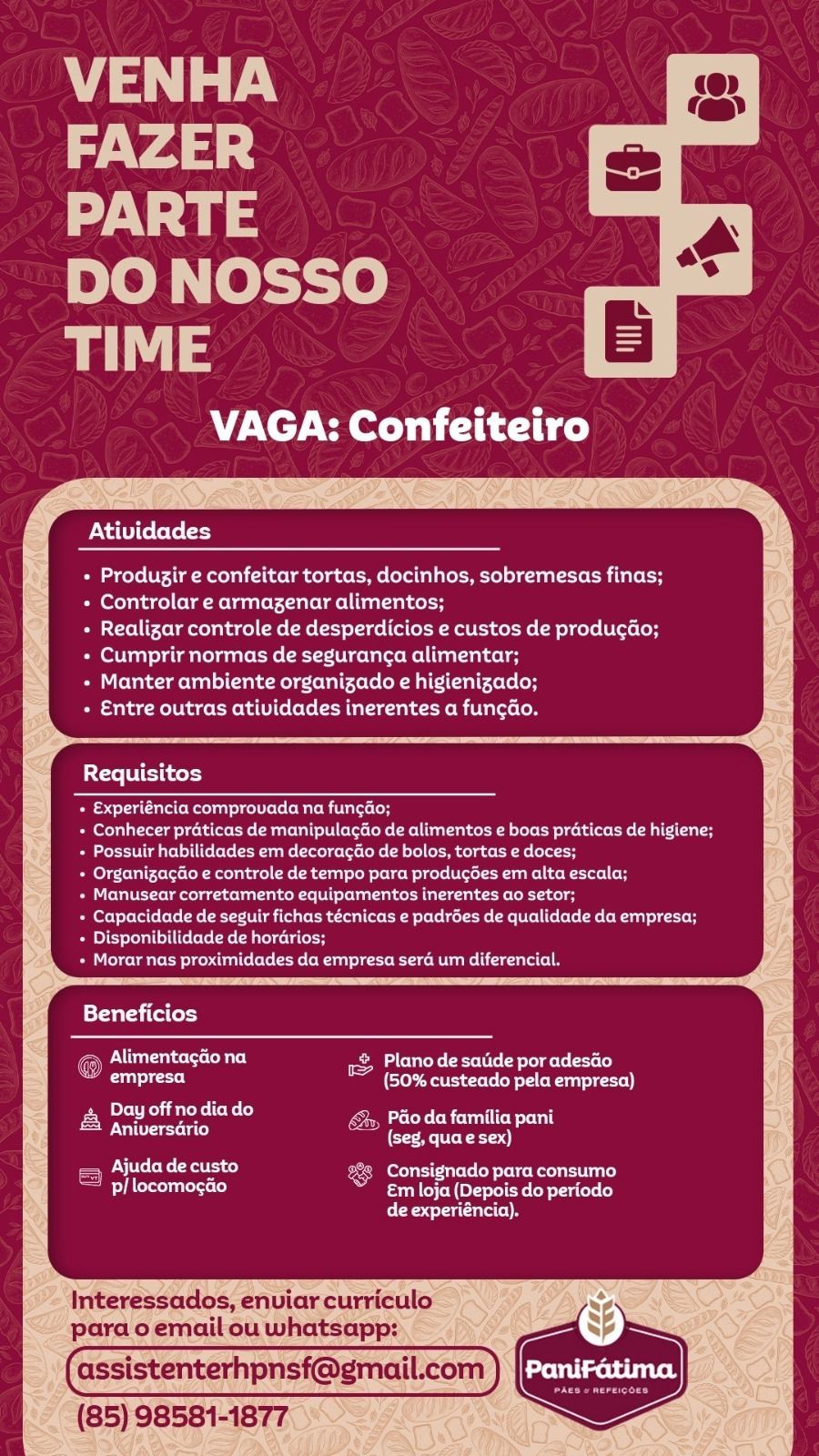 Auxiliar de Produção | Confeiteiro