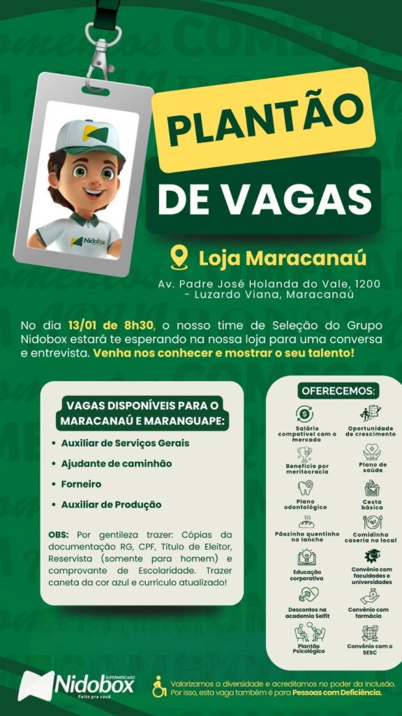 As vagas são divulgadas da mesma forma que recebemos. Não nos responsabilizamos pelas vagas, nem pelas informações fornecidas referente as mesmas, também não nos responsabilizamos pela idoneidade das empresas e instituições, apenas divulgamos as vagas que recebemos. Alertamos à buscar informações sobre as empresas que estão disponibilizando as vagas, através de contato por telefone ou e-mail divulgados nas mesmas, além de pesquisar na internet ou outros meios. Tome muito cuidado com locais (empresas ou instituições) que cobram taxas para garantir vagas ou para garantir uma colocação no mercado de trabalho. Esteja atento (a) a localização (endereço) da entrevista e do local de trabalho, se não conhecer ou achar que é um lugar isolado, vá com uma companhia ou não vá. Ter um emprego para garantir seu sustento e de sua família é importante, mas sua segurança e integridade também é, por isso, esteja atento. Se você é menor de idade vá acompanhado (a) de um (a) responsável.