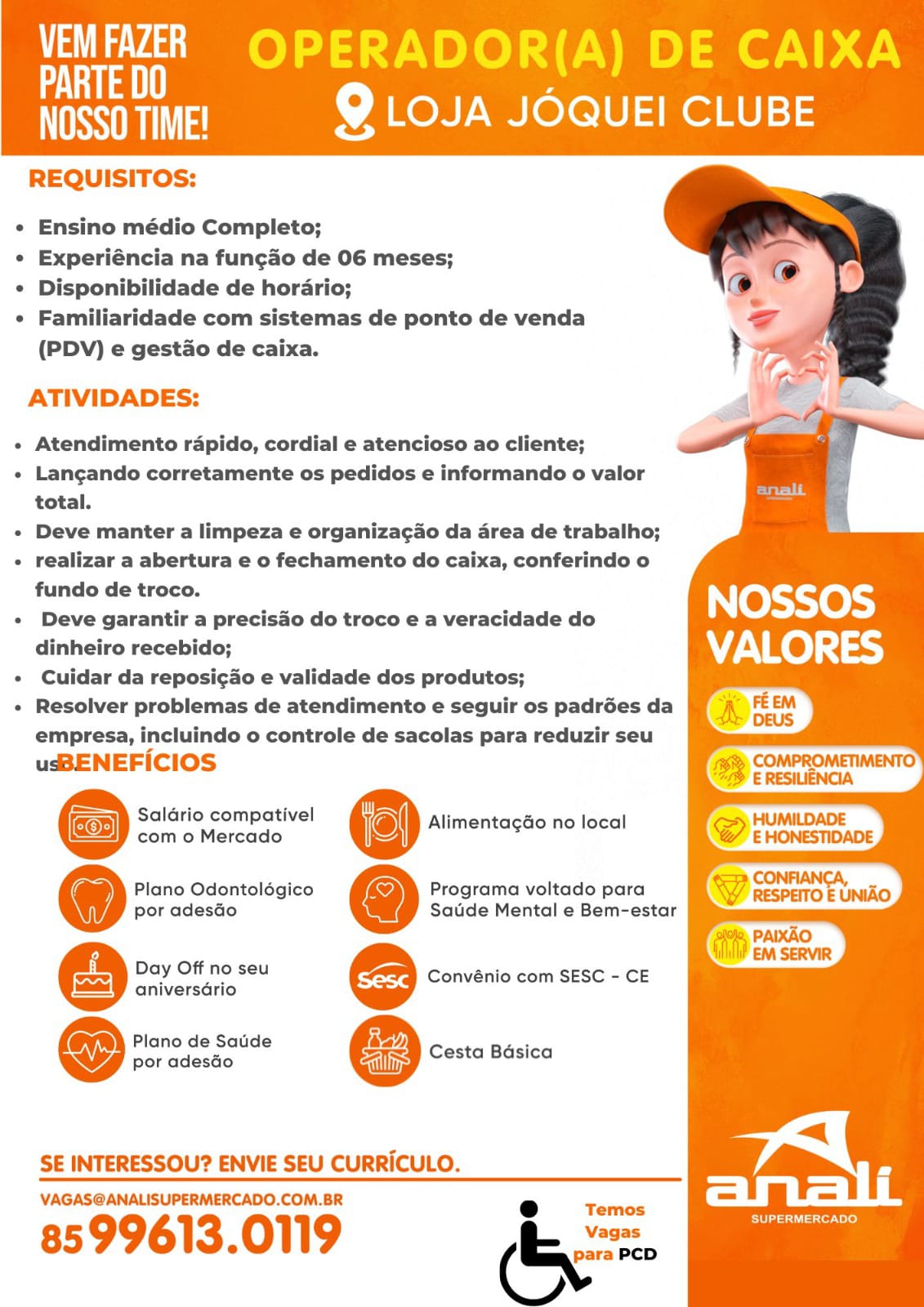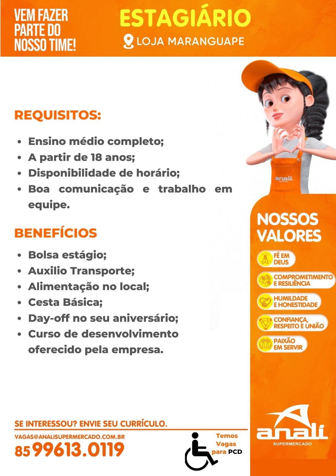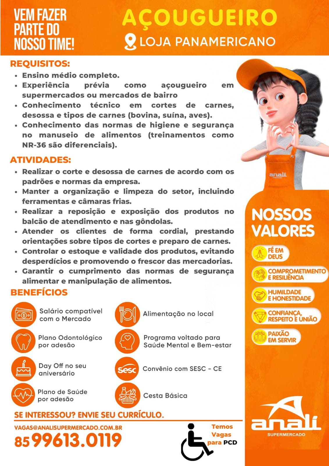 Auxiliar de Serviços Gerais, Operador(a) de Caixa, Açougueiro, Estagiário, Motoqueiro, Auxiliar de Padaria, Repositor