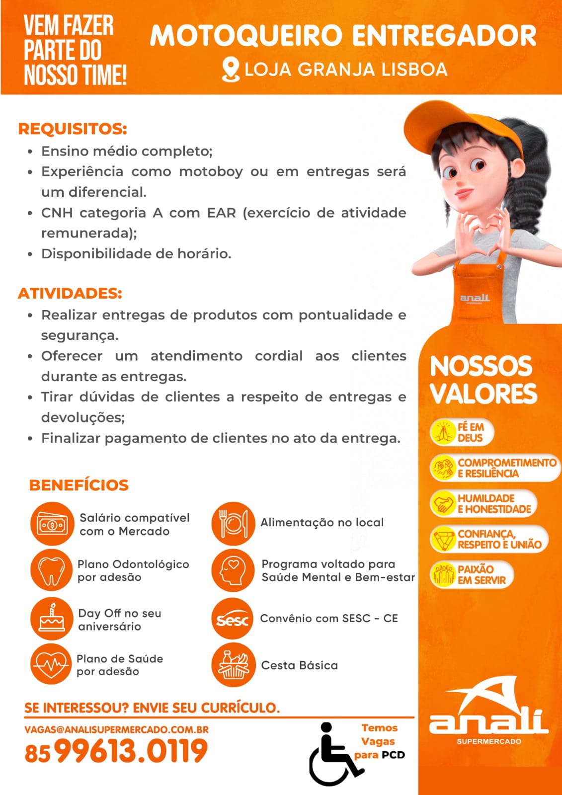 As vagas são divulgadas da mesma forma que recebemos. Não nos responsabilizamos pelas vagas, nem pelas informações fornecidas referente as mesmas, também não nos responsabilizamos pela idoneidade das empresas e instituições, apenas divulgamos as vagas que recebemos. Alertamos à buscar informações sobre as empresas que estão disponibilizando as vagas, através de contato por telefone ou e-mail divulgados nas mesmas, além de pesquisar na internet ou outros meios. Tome muito cuidado com locais (empresas ou instituições) que cobram taxas para garantir vagas ou para garantir uma colocação no mercado de trabalho. Esteja atento (a) a localização (endereço) da entrevista e do local de trabalho, se não conhecer ou achar que é um lugar isolado, vá com uma companhia ou não vá. Ter um emprego para garantir seu sustento e de sua família é importante, mas sua segurança e integridade também é, por isso, esteja atento. Se você é menor de idade vá acompanhado (a) de um (a) responsável.