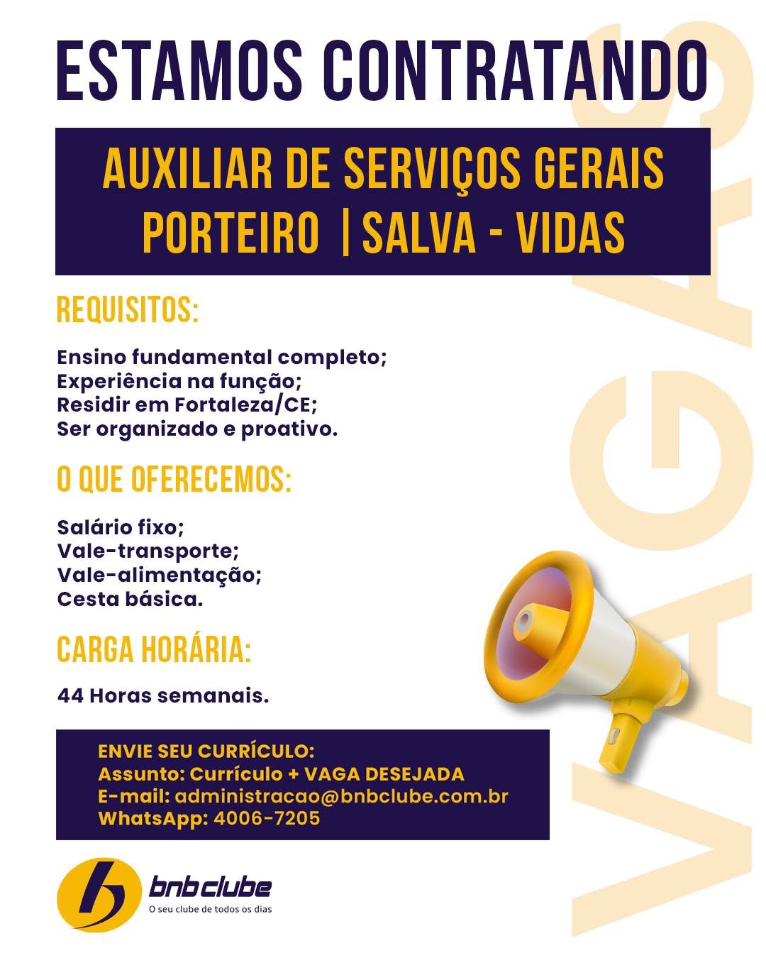 Auxiliar de Serviços Gerais, Porteiro, Salva-Vidas