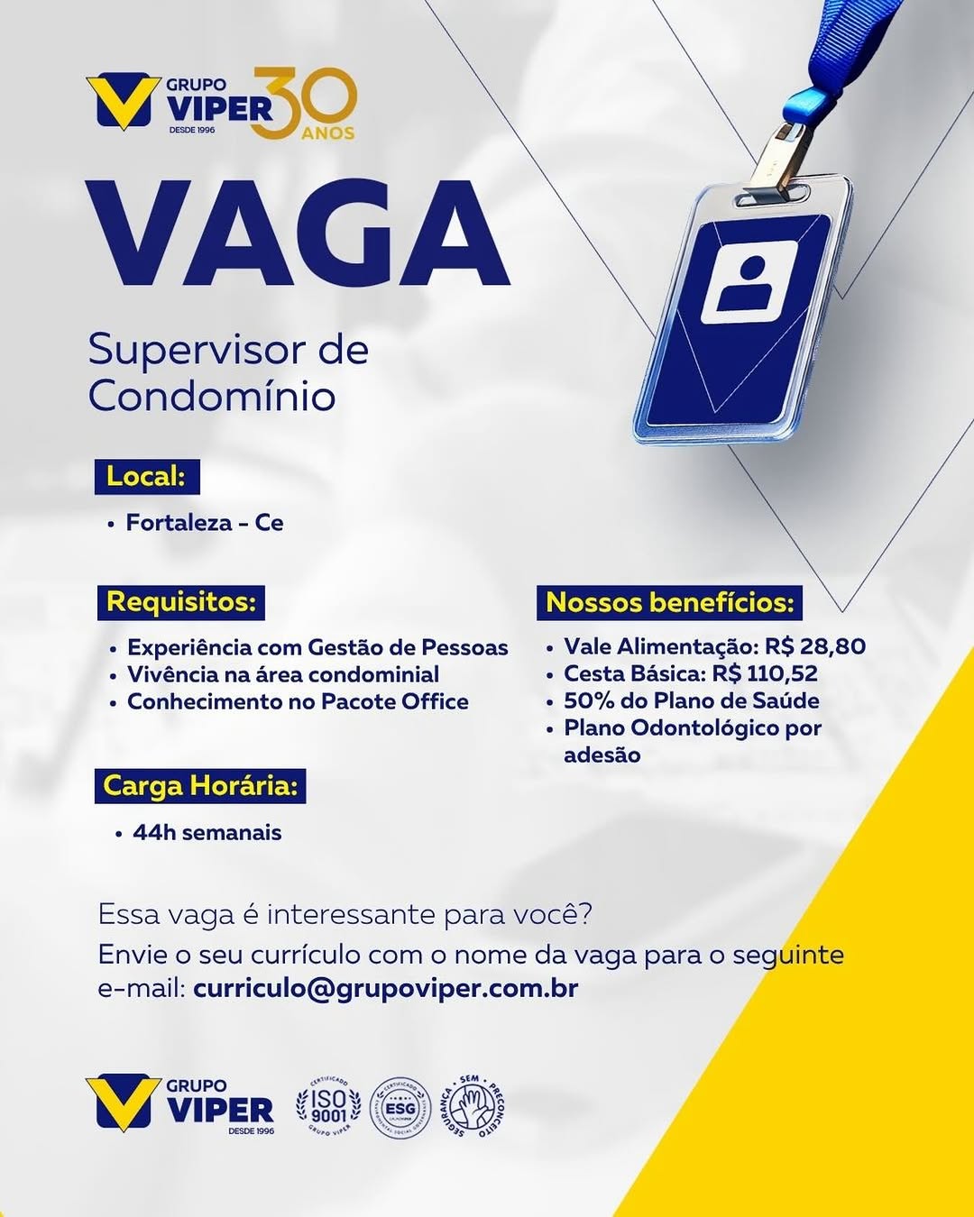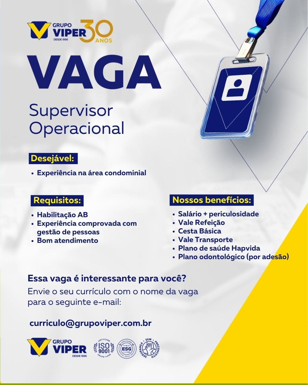 Auxiliar de Serviços Gerais Supervisor Operacional, Supervisor de Condomínio