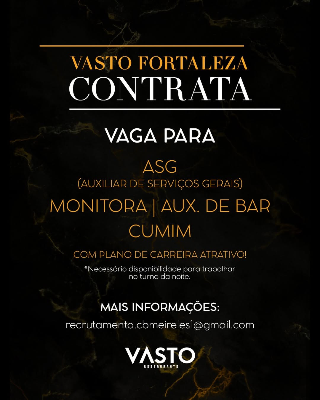 Auxiliar de Serviços Gerias, Monitora, Auxiliar de Bar, Cumim
