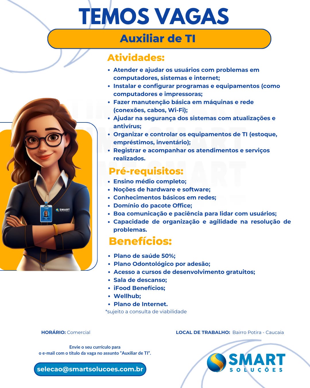 Auxiliar de TI, Auxiliar de Suporte, Consultor Corporativo, Auxiliar de Frotas, Instalador de Internet, Consultor de Vendas B2b, Operador(a) de Retenção