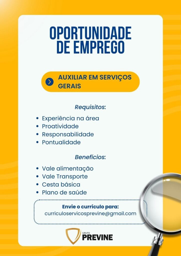 Não nos responsabilizamos pelas vagas, nem pelas informações fornecidas referente as mesmas, também não nos responsabilizamos pela idoneidade das empresas e instituições, apenas divulgamos as vagas que recebemos. Alertamos à buscar informações sobre as empresas que estão disponibilizando as vagas, através de contato por telefone ou e-mail divulgados nas mesmas, além de pesquisar na internet ou outros meios. Tome muito cuidado com locais (empresas ou instituições) que cobram taxas para garantir vagas ou para garantir uma colocação no mercado de trabalho. Esteja atento (a) a localização (endereço) da entrevista e do local de trabalho, se não conhecer ou achar que é um lugar isolado, vá com uma companhia ou não vá. Ter um emprego para garantir seu sustento e de sua família é importante, mas sua segurança e integridade também é, por isso, esteja atento. Se você é menor de idade vá acompanhado (a) de um (a) responsável.