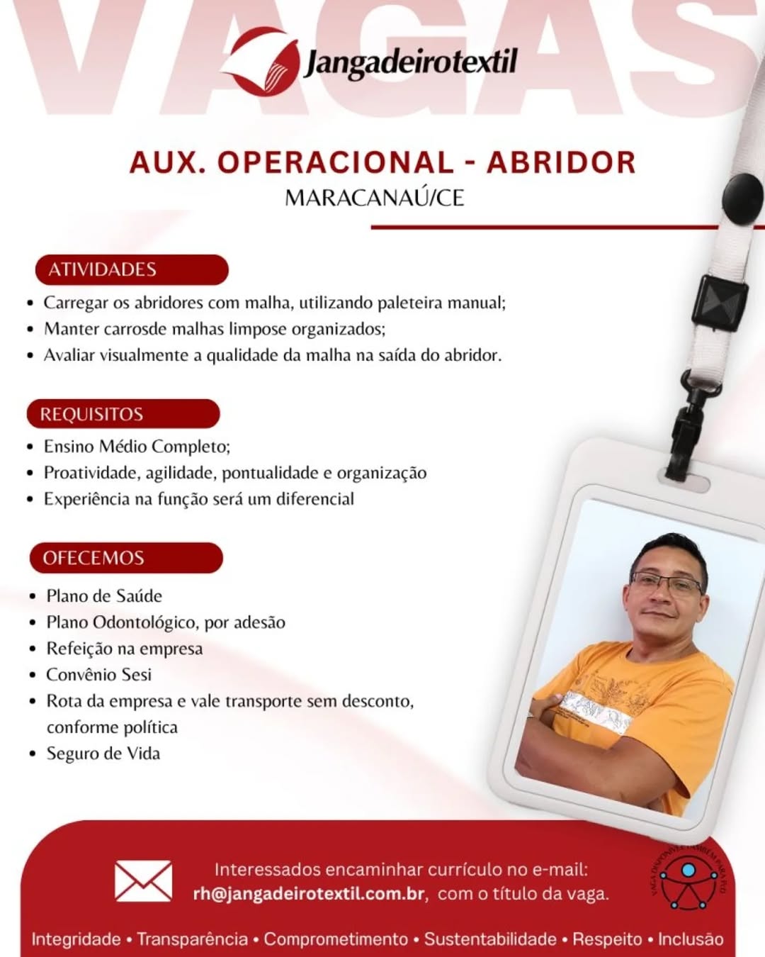 Nós não somos agência de empregos, não cobramos nada, nem antes e nem depois de você conseguir o seu emprego. Não somos nós que realizamos a seleção de currículos, também não realizamos entrevistas. Não nos responsabilizamos pelo envio de currículos. O envio de currículo deverá ser realizado pela pessoa interessada no e-mail que estiver na vaga.