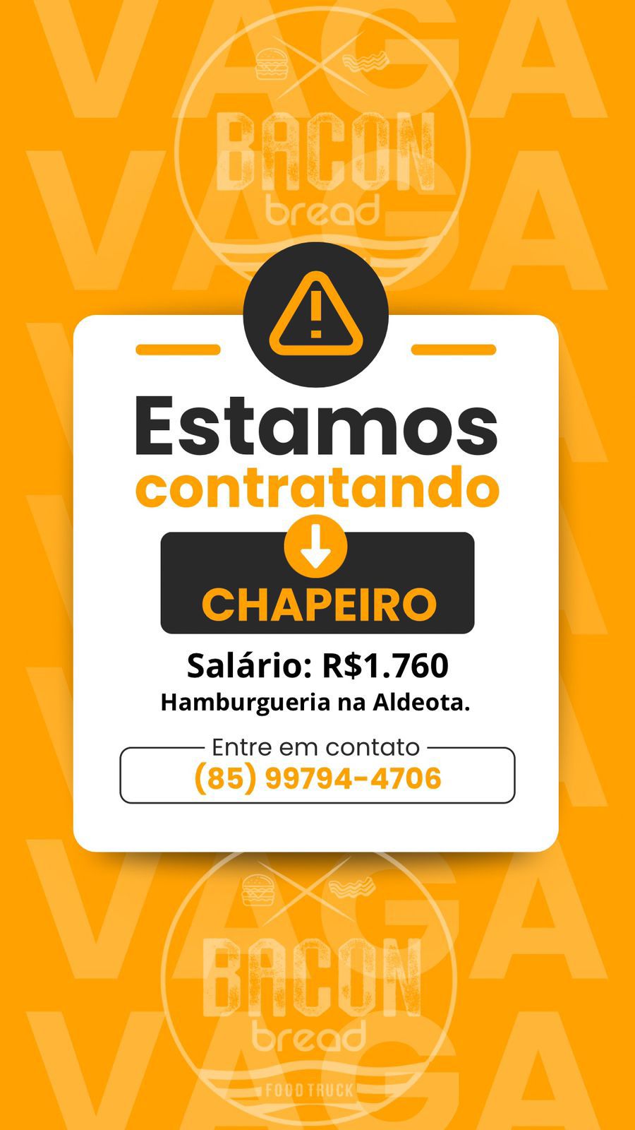 As vagas são divulgadas da mesma forma que recebemos. Não nos responsabilizamos pelas vagas, nem pelas informações fornecidas referente as mesmas, também não nos responsabilizamos pela idoneidade das empresas e instituições, apenas divulgamos as vagas que recebemos. Alertamos à buscar informações sobre as empresas que estão disponibilizando as vagas, através de contato por telefone ou e-mail divulgados nas mesmas, além de pesquisar na internet ou outros meios. Tome muito cuidado com locais (empresas ou instituições) que cobram taxas para garantir vagas ou para garantir uma colocação no mercado de trabalho. Esteja atento (a) a localização (endereço) da entrevista e do local de trabalho, se não conhecer ou achar que é um lugar isolado, vá com uma companhia ou não vá. Ter um emprego para garantir seu sustento e de sua família é importante, mas sua segurança e integridade também é, por isso, esteja atento. Se você é menor de idade vá acompanhado (a) de um (a) responsável.