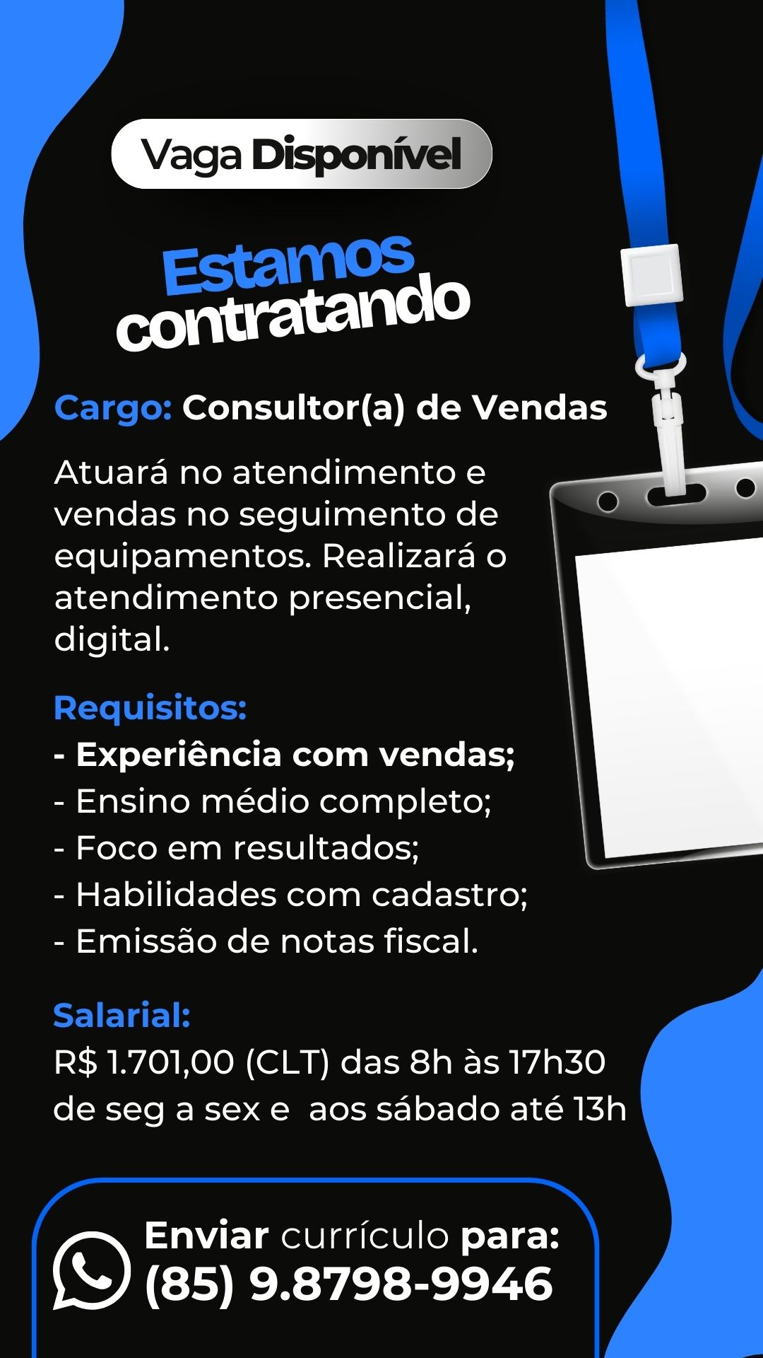 As vagas são divulgadas da mesma forma que recebemos. Não nos responsabilizamos pelas vagas, nem pelas informações fornecidas referente as mesmas, também não nos responsabilizamos pela idoneidade das empresas e instituições, apenas divulgamos as vagas que recebemos. Alertamos à buscar informações sobre as empresas que estão disponibilizando as vagas, através de contato por telefone ou e-mail divulgados nas mesmas, além de pesquisar na internet ou outros meios. Tome muito cuidado com locais (empresas ou instituições) que cobram taxas para garantir vagas ou para garantir uma colocação no mercado de trabalho. Esteja atento (a) a localização (endereço) da entrevista e do local de trabalho, se não conhecer ou achar que é um lugar isolado, vá com uma companhia ou não vá. Ter um emprego para garantir seu sustento e de sua família é importante, mas sua segurança e integridade também é, por isso, esteja atento. Se você é menor de idade vá acompanhado (a) de um (a) responsável.