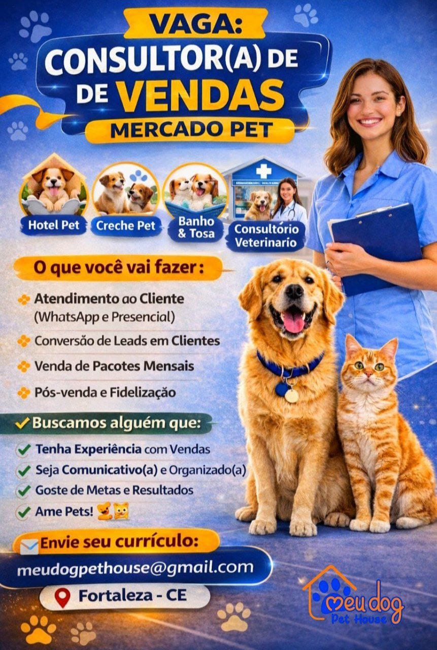 Consultor(a) de Vendas PET, Assistente de Auditoria, Motorista, SDR, Comprador, Assistente Financeiro, Viedomaker, Social Media, Coordenador(a) de Operações, Motorista