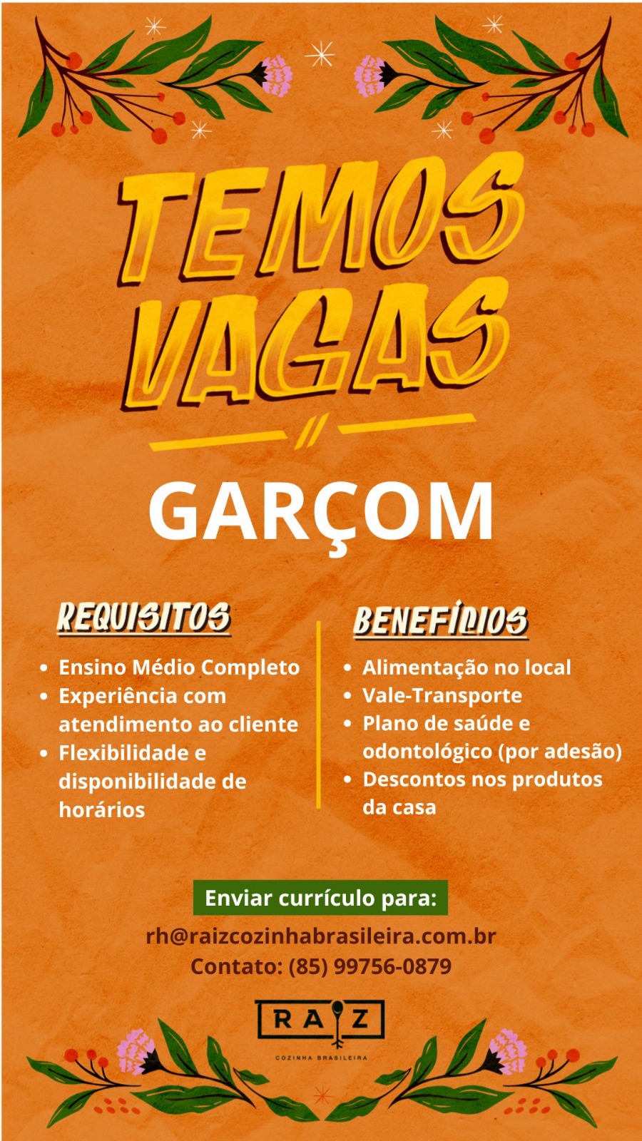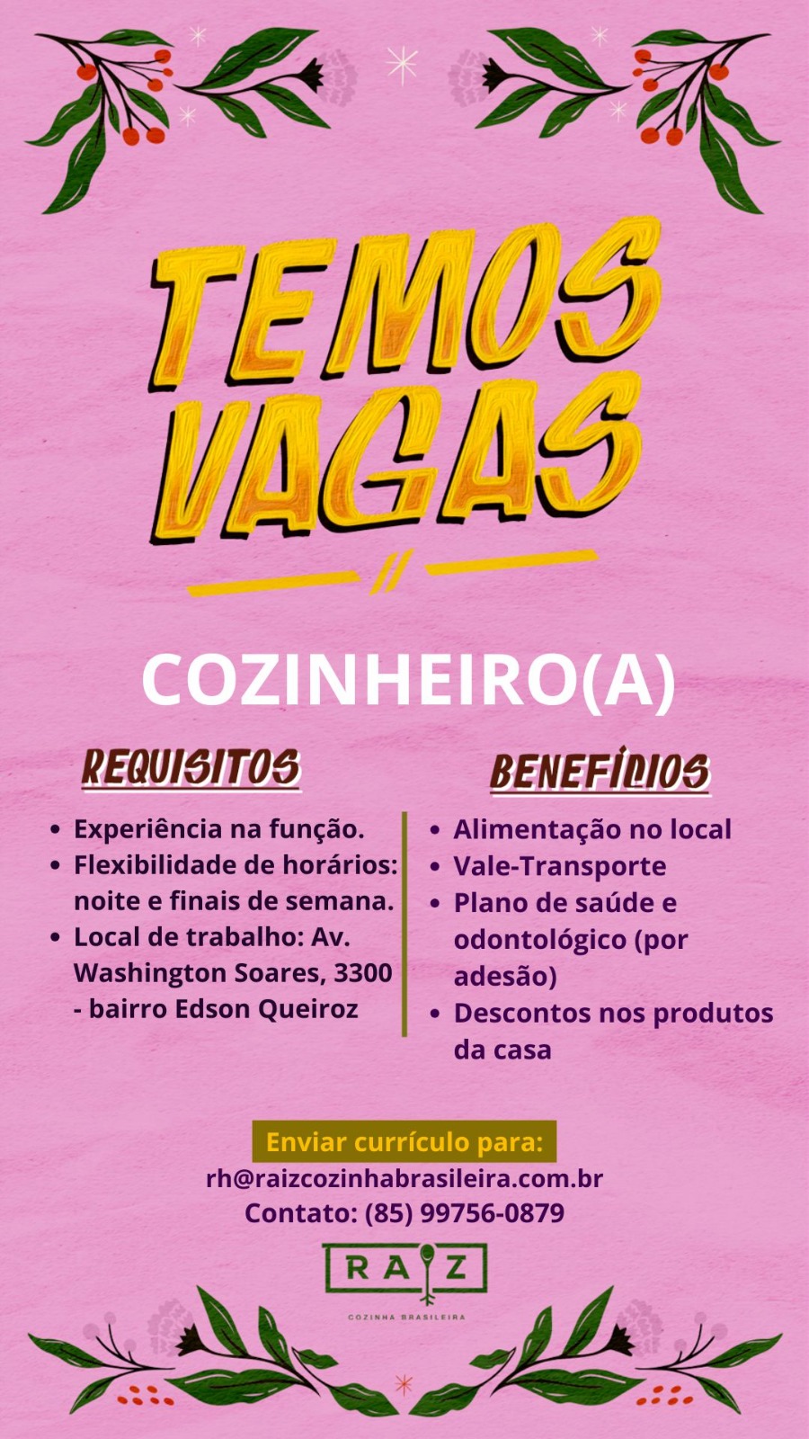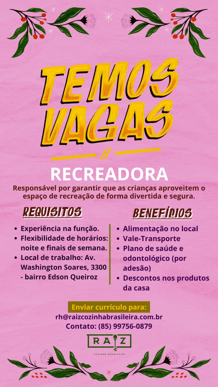 Cozinheiro(a), Recreadora, Recepcionista, Garçom
