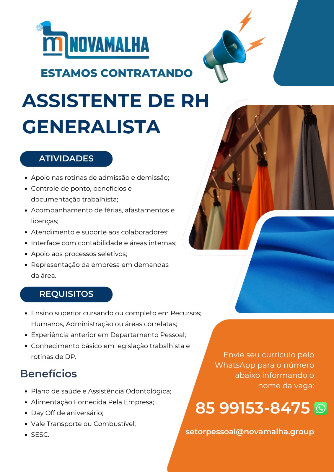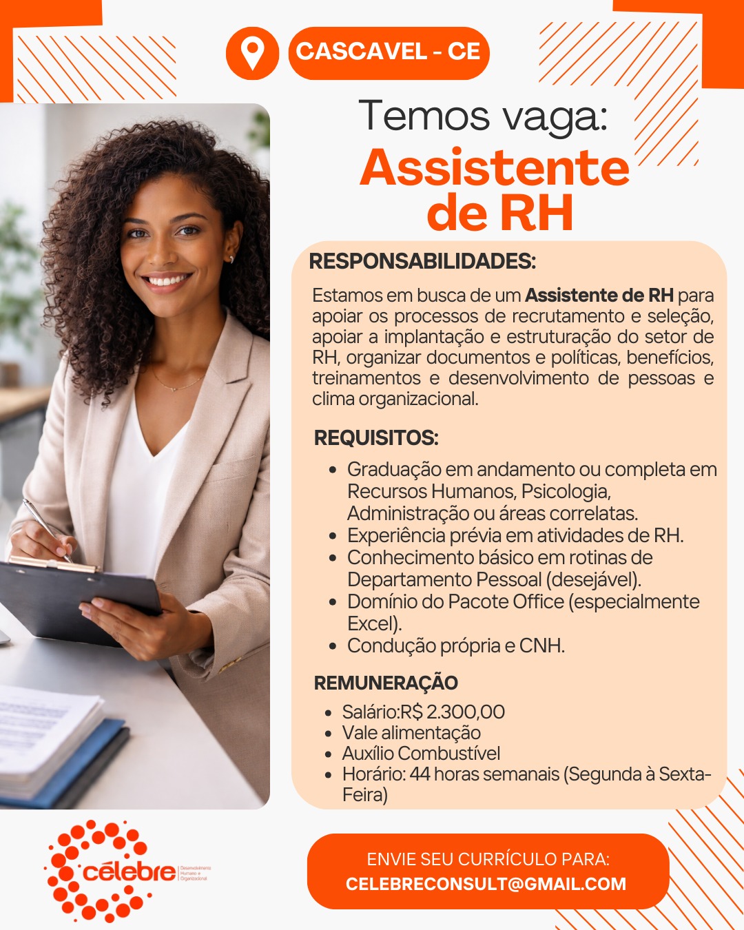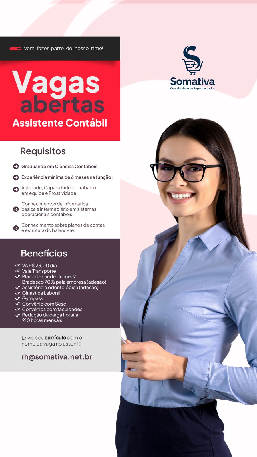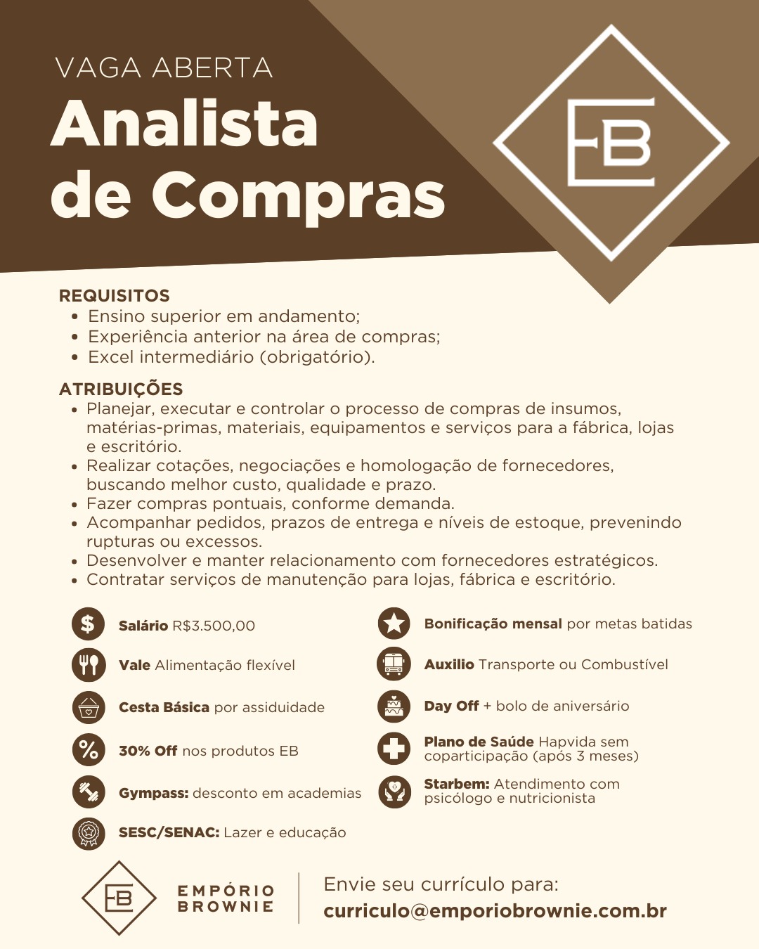 Estágio em Pedagogia, Auxiliar de Compras, Designer Gráfico, Analista de Compras, Assistente de RH, Assistente Contábil, Consultor(a) de Vendas, Supervisor Interno de Operações, Assistente Jurídico, Assistente de RH