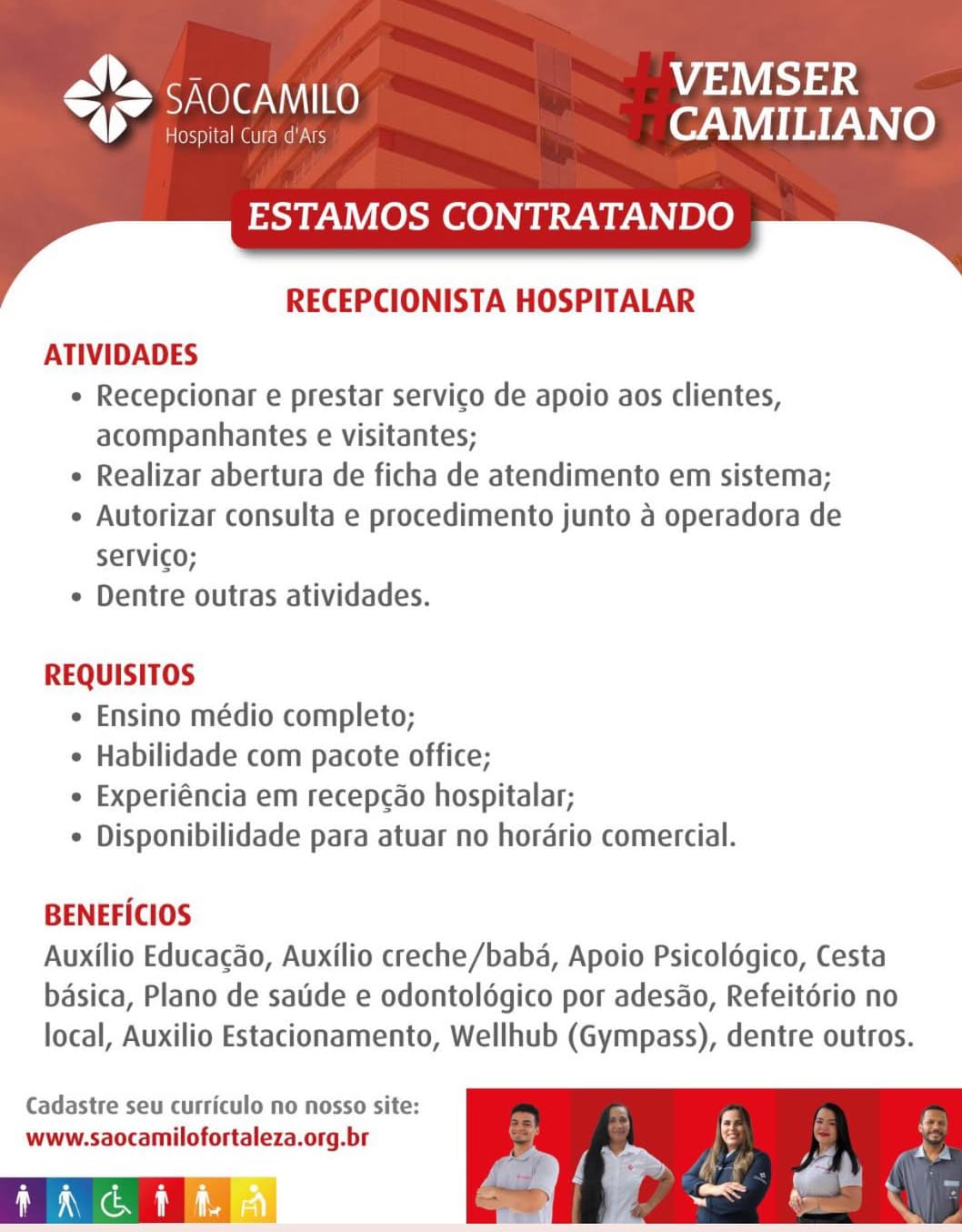 Ajudante de Cozinha, Auxiliar de Cozinha, Motorista, Operador de Farmácia, Serviços Gerais, Recepcionista Hospitalar, Auxiliar de Logística, Vendedor(a), Bombeiro Hidráulico