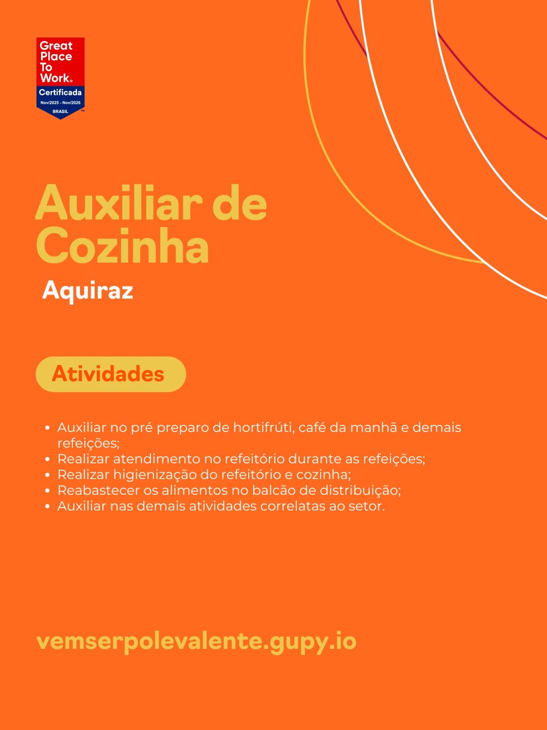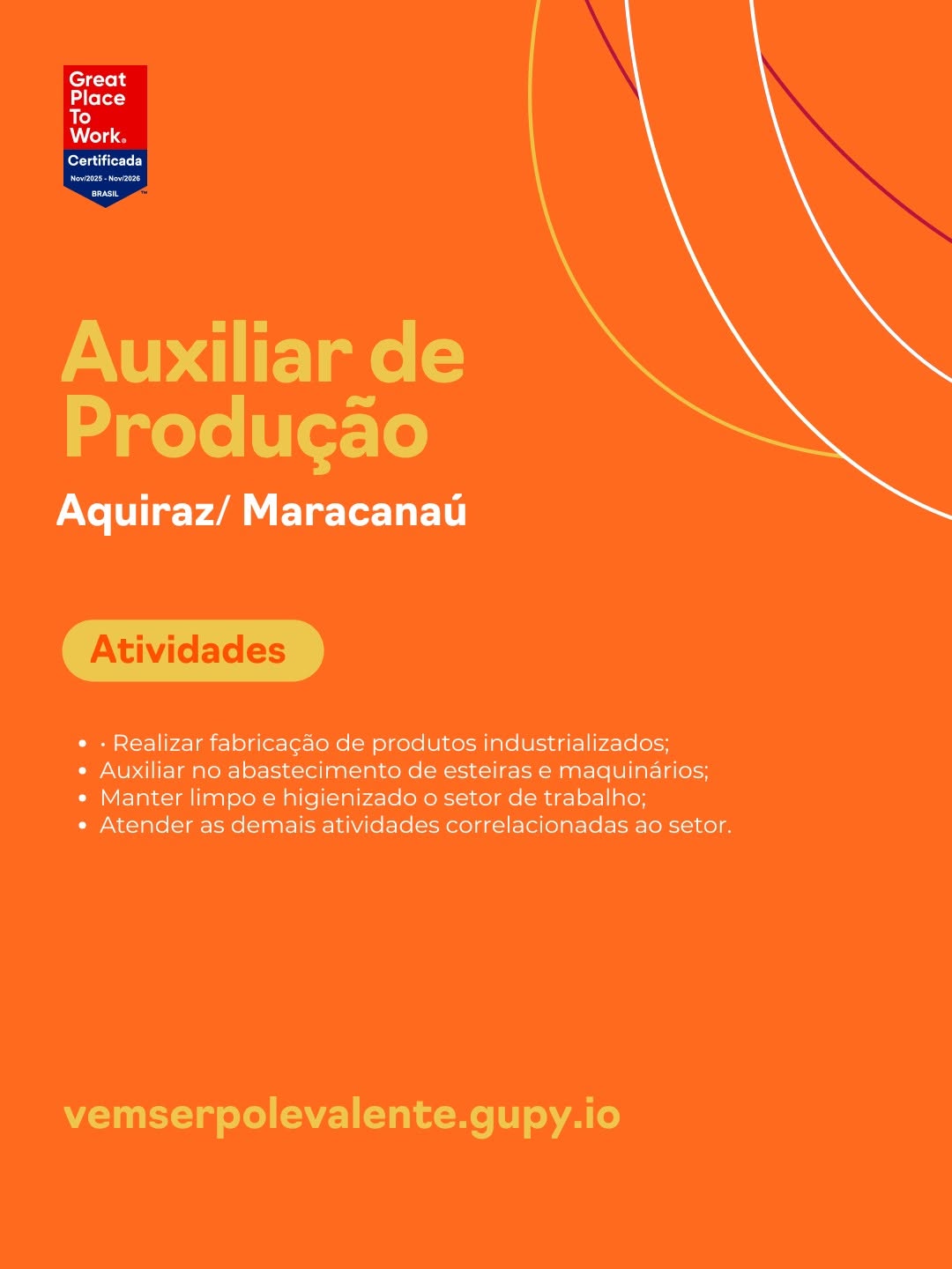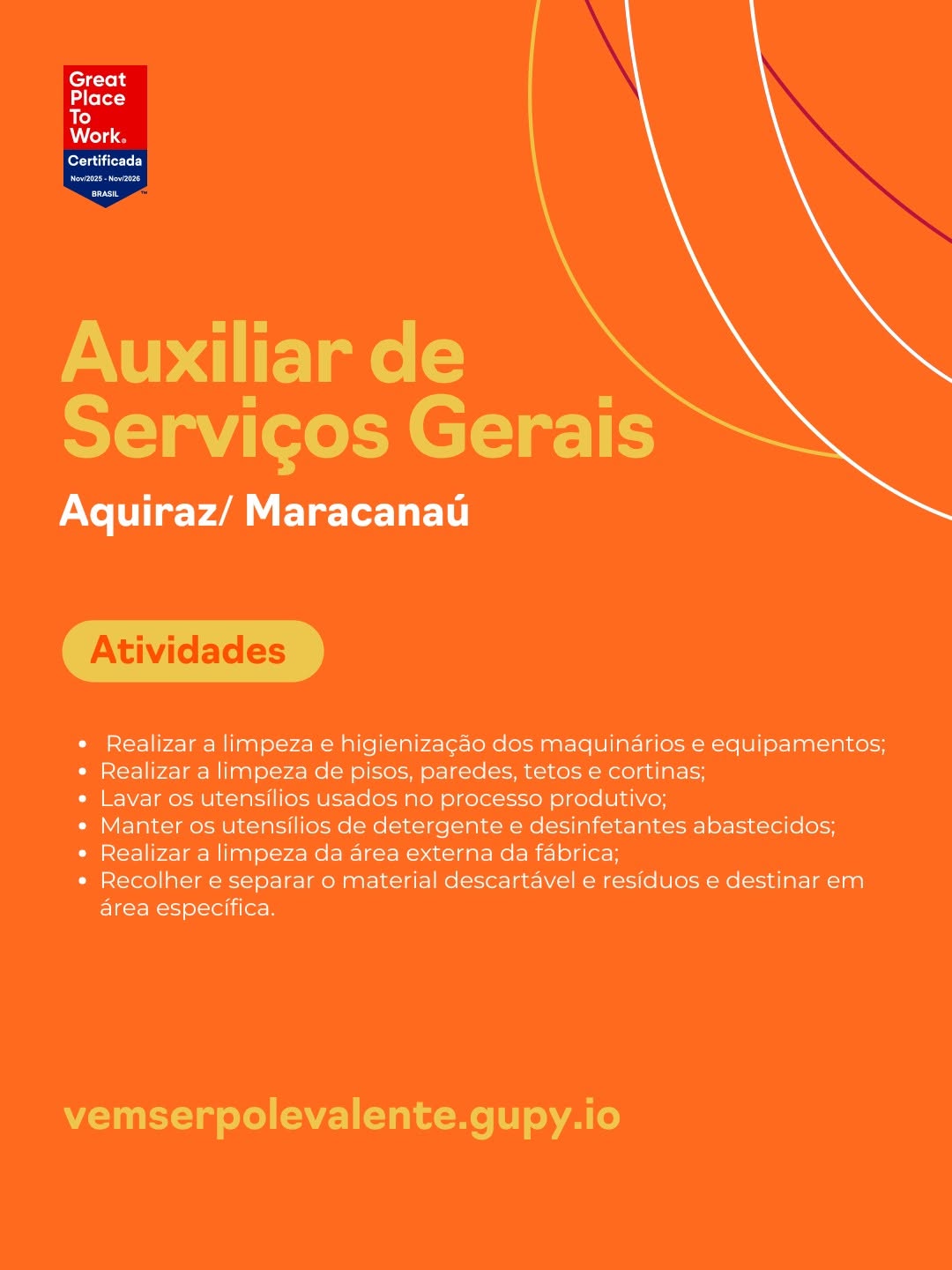 Auxiliar Serviços Gerais, Servente, Auxiliar de Expedição, Auxiliar de Produção, Técnico de Segurança, Pedreiro, Ajudante de Motorista, Auxiliar de Cozinha