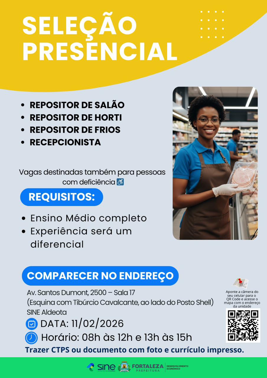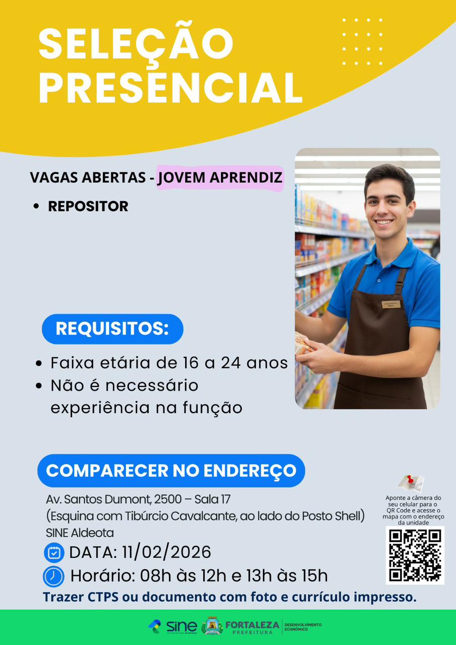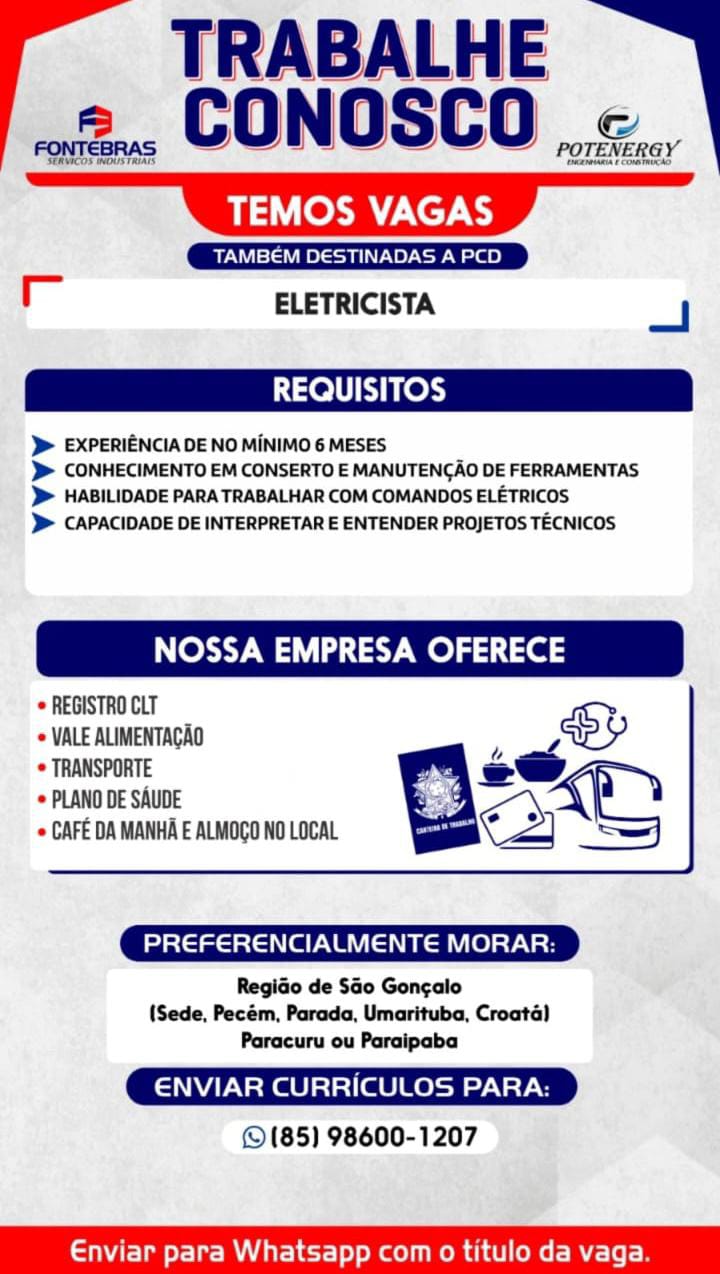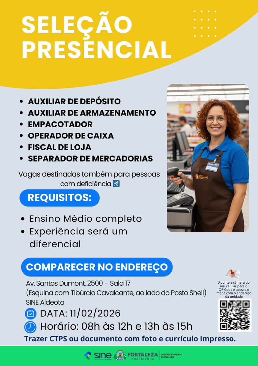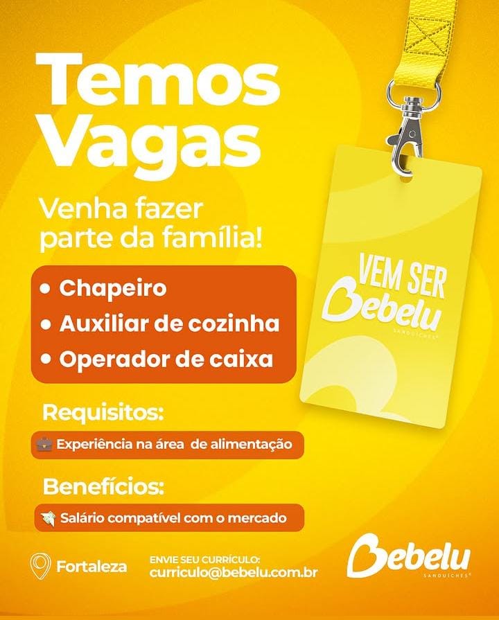 Motorista, Eletricista, Chapeiro, Operador de Caixa, Psicólogo, Estágio em Pedagogia, Jovem Aprendiz, Auxiliar de Limpeza, Repositor, Recepcionista, Auxiliar de Depósito, Auxiliar de Armazém, Empacotador, Fiscal de Loja, Separador de Mercadorias, Estágio em Administração, Estágio em Química, Auxiliar de Serviços Gerais, Manicure, Churrasqueiro, Auxiliar de Cozinha, Cumim, Sushiman