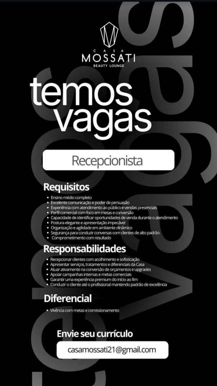 Consultora de Venda, Auxiliar de Carga e Descarga, Assistente de RH, Técnico de Refrigeração, Professora de Educação Infantil, Auxiliar de Coordenação Pedagógica, Professor de História, Estágio de Segurança do Trabalho, Departamento Pessoal, Motoqueiro, Supervisor Comercial, Cozinheiro, Psicopedagogo(a), Auxiliar de Sala, Atendente, Analista Administrativo, Recepcionista, Advogado, Assistente de Marketing