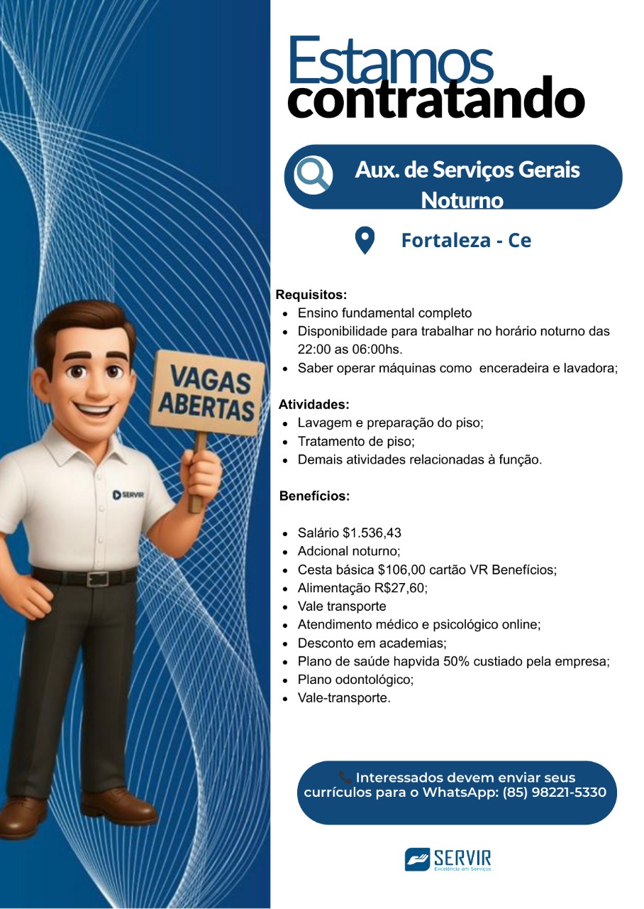 As vagas são divulgadas da mesma forma que recebemos. Não nos responsabilizamos pelas vagas, nem pelas informações fornecidas referente as mesmas, também não nos responsabilizamos pela idoneidade das empresas e instituições, apenas divulgamos as vagas que recebemos. Alertamos à buscar informações sobre as empresas que estão disponibilizando as vagas, através de contato por telefone ou e-mail divulgados nas mesmas, além de pesquisar na internet ou outros meios. Tome muito cuidado com locais (empresas ou instituições) que cobram taxas para garantir vagas ou para garantir uma colocação no mercado de trabalho. Esteja atento (a) a localização (endereço) da entrevista e do local de trabalho, se não conhecer ou achar que é um lugar isolado, vá com uma companhia ou não vá. Ter um emprego para garantir seu sustento e de sua família é importante, mas sua segurança e integridade também é, por isso, esteja atento. Se você é menor de idade vá acompanhado (a) de um (a) responsável.