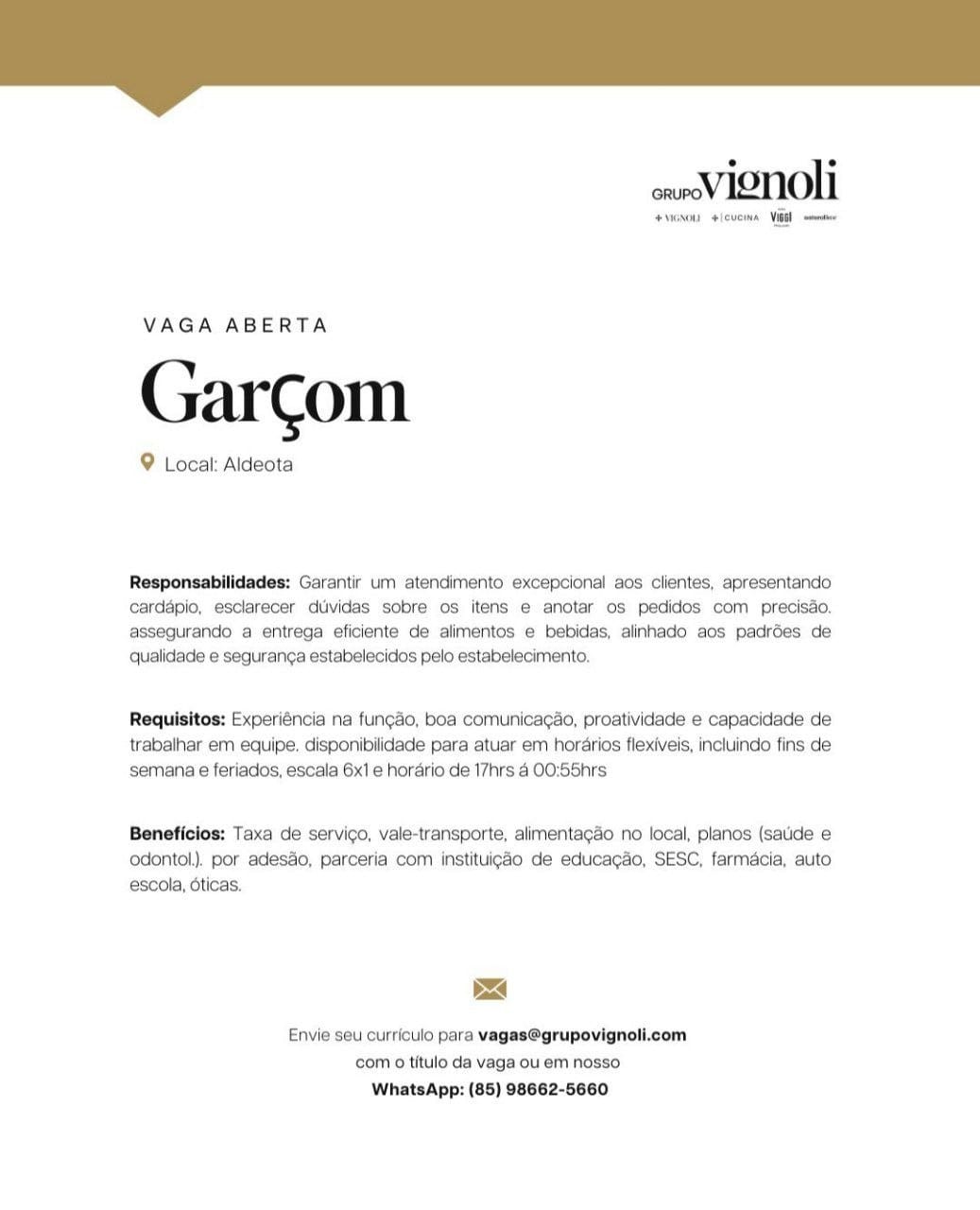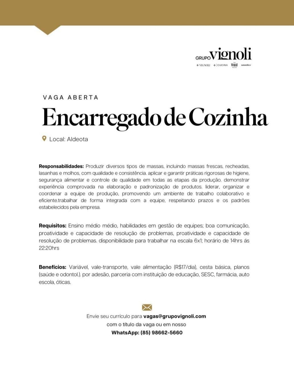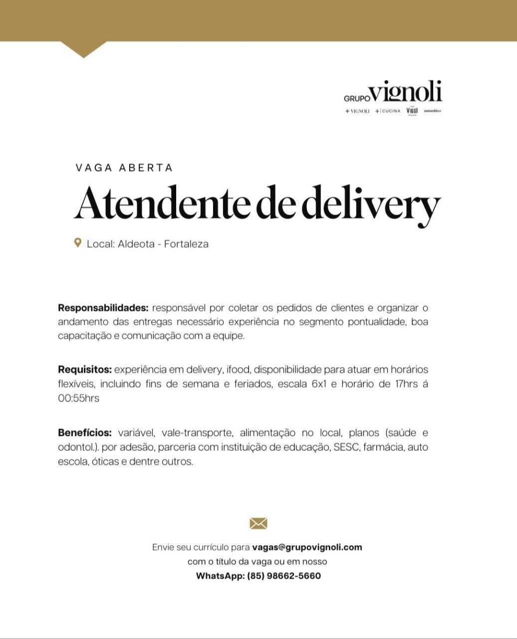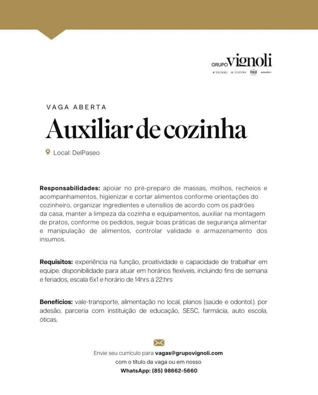 Encarregado de Cozinha, Atendente de Delivery, Pizzaiolo, Auxiliar de Manutenção, Auxiliar de Produção, Auxiliar de Cozinha, Garçom, Cumim, Cozinheiro