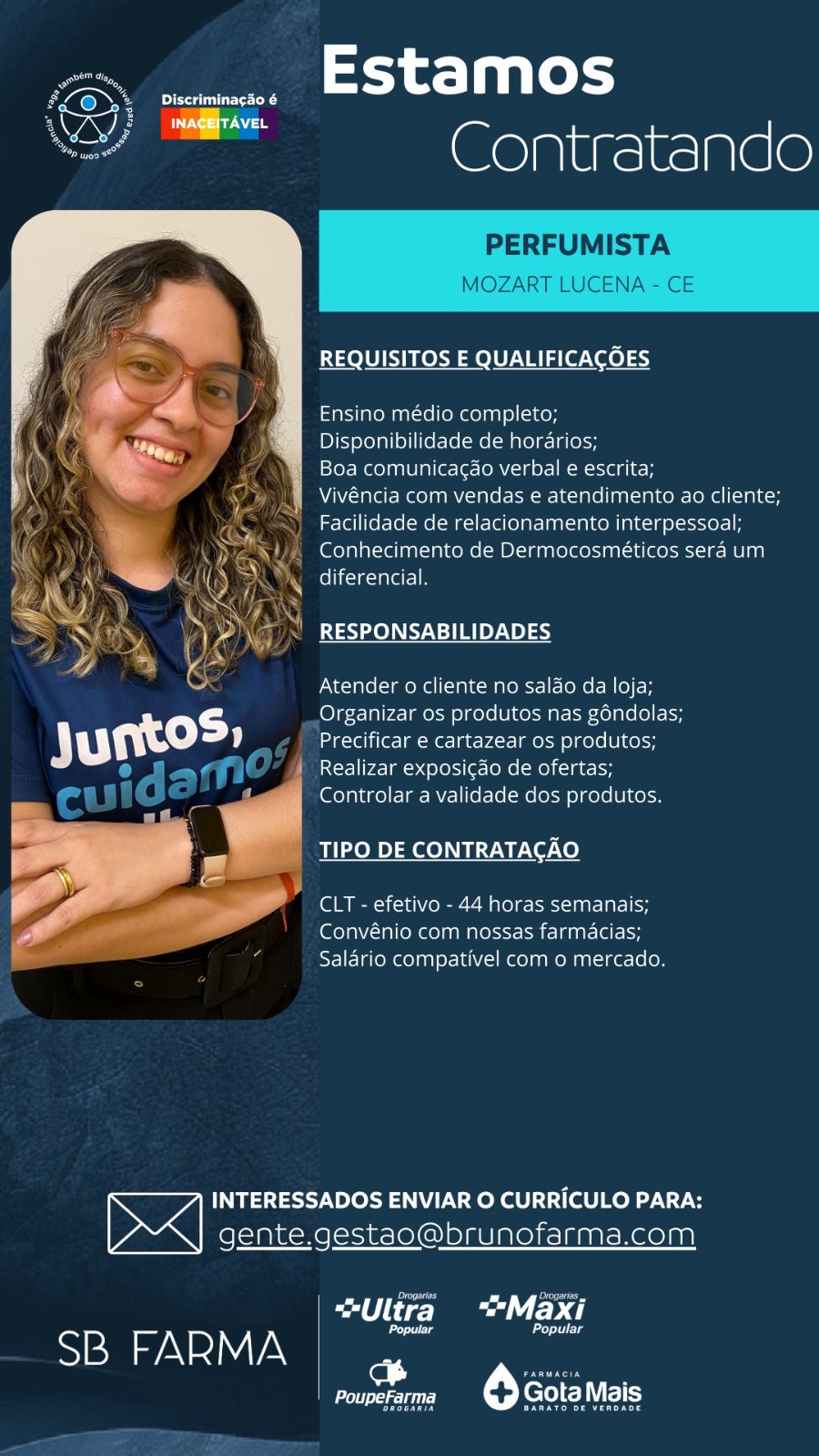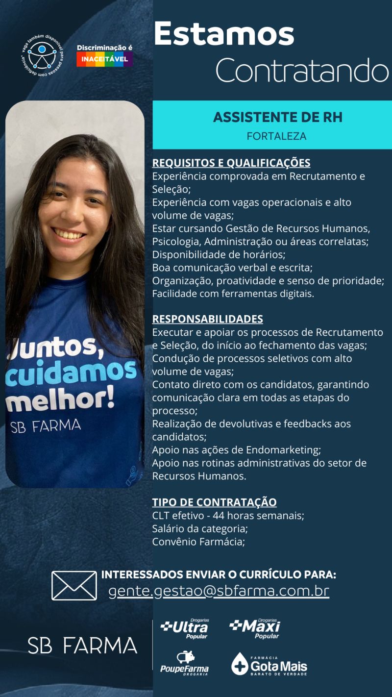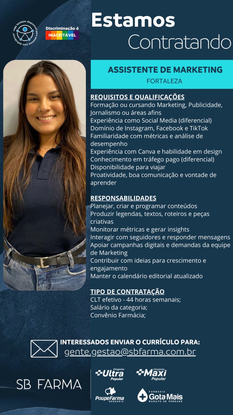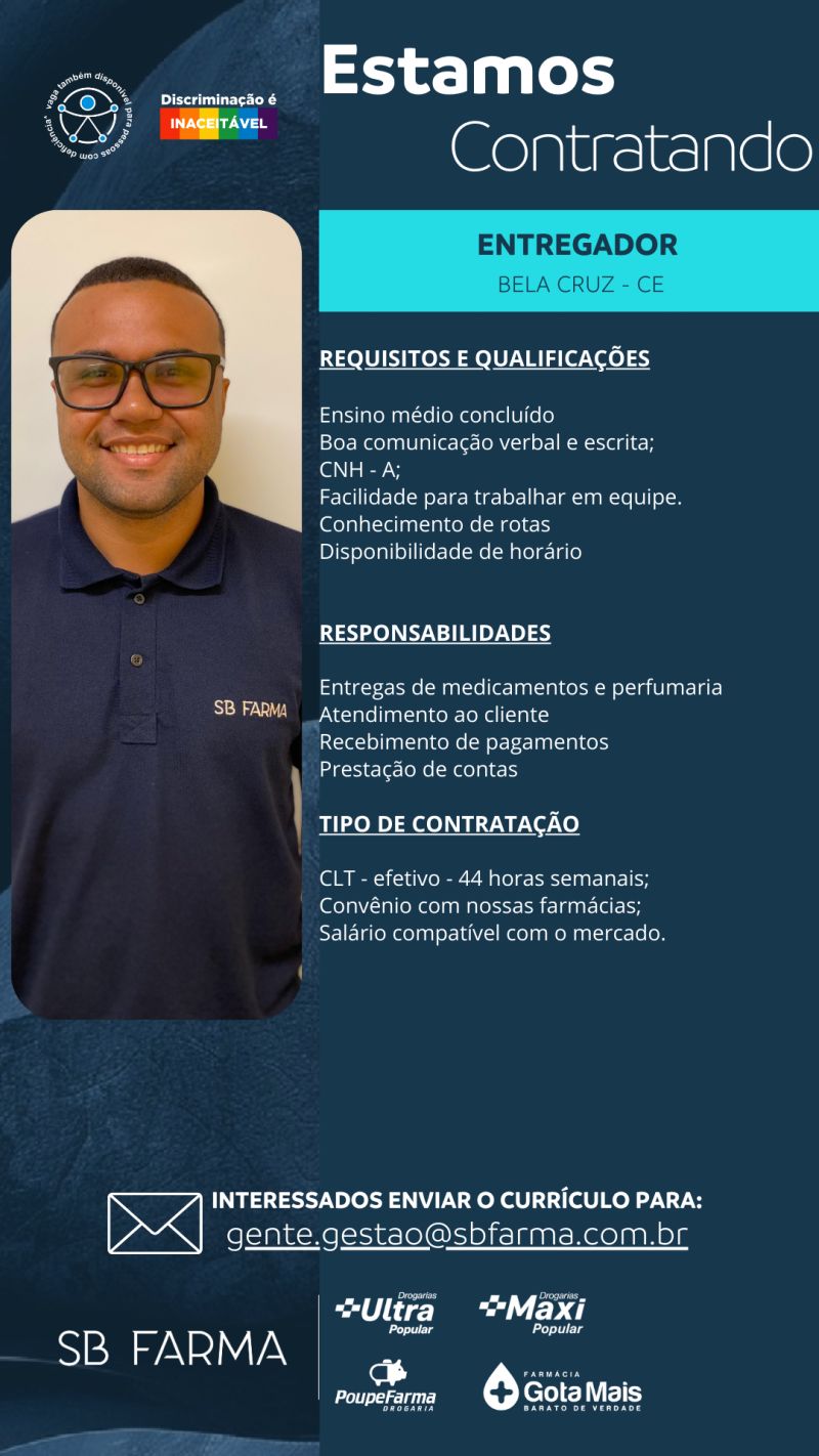 Entregador, Fiscal de Loja, Assistente de Marketing, Operador de Farmácia, Frente de Loja, Perfumista, Assistente de RH,