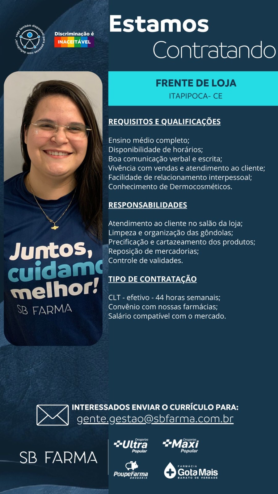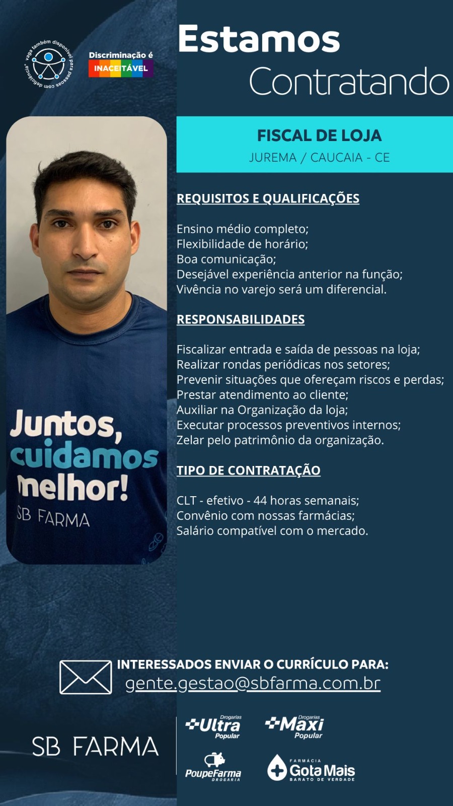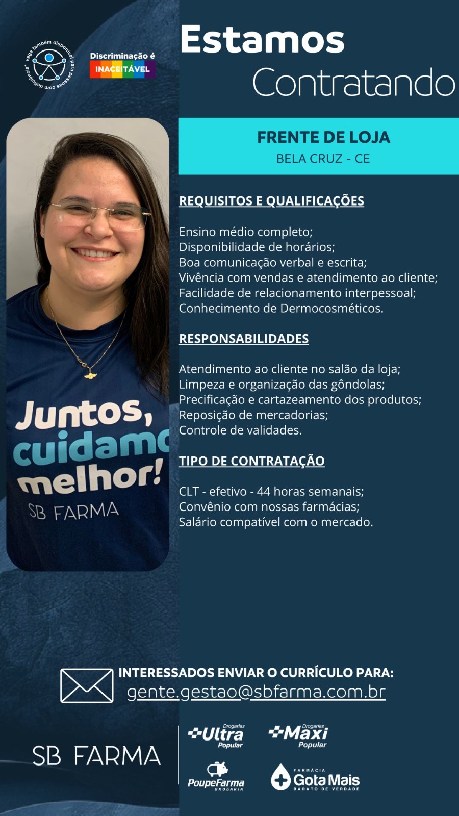 Entregador, Fiscal de Loja, Assistente de Marketing, Operador de Farmácia, Frente de Loja, Perfumista, Assistente de RH,
