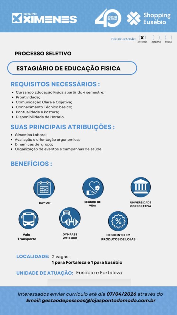 Nós não somos agência de empregos, não cobramos nada, nem antes e nem depois de você conseguir o seu emprego. Não somos nós que realizamos a seleção de currículos, também não realizamos entrevistas. Não nos responsabilizamos pelo envio de currículos. O envio de currículo deverá ser realizado pela pessoa interessada no e-mail que estiver na vaga.