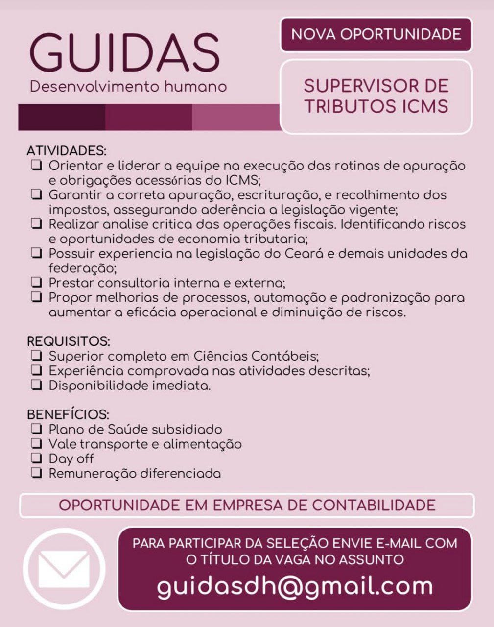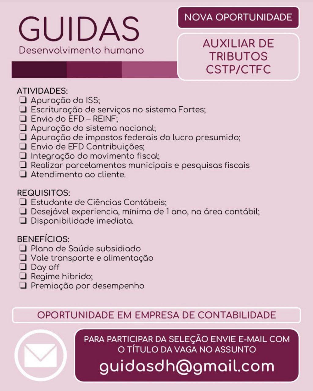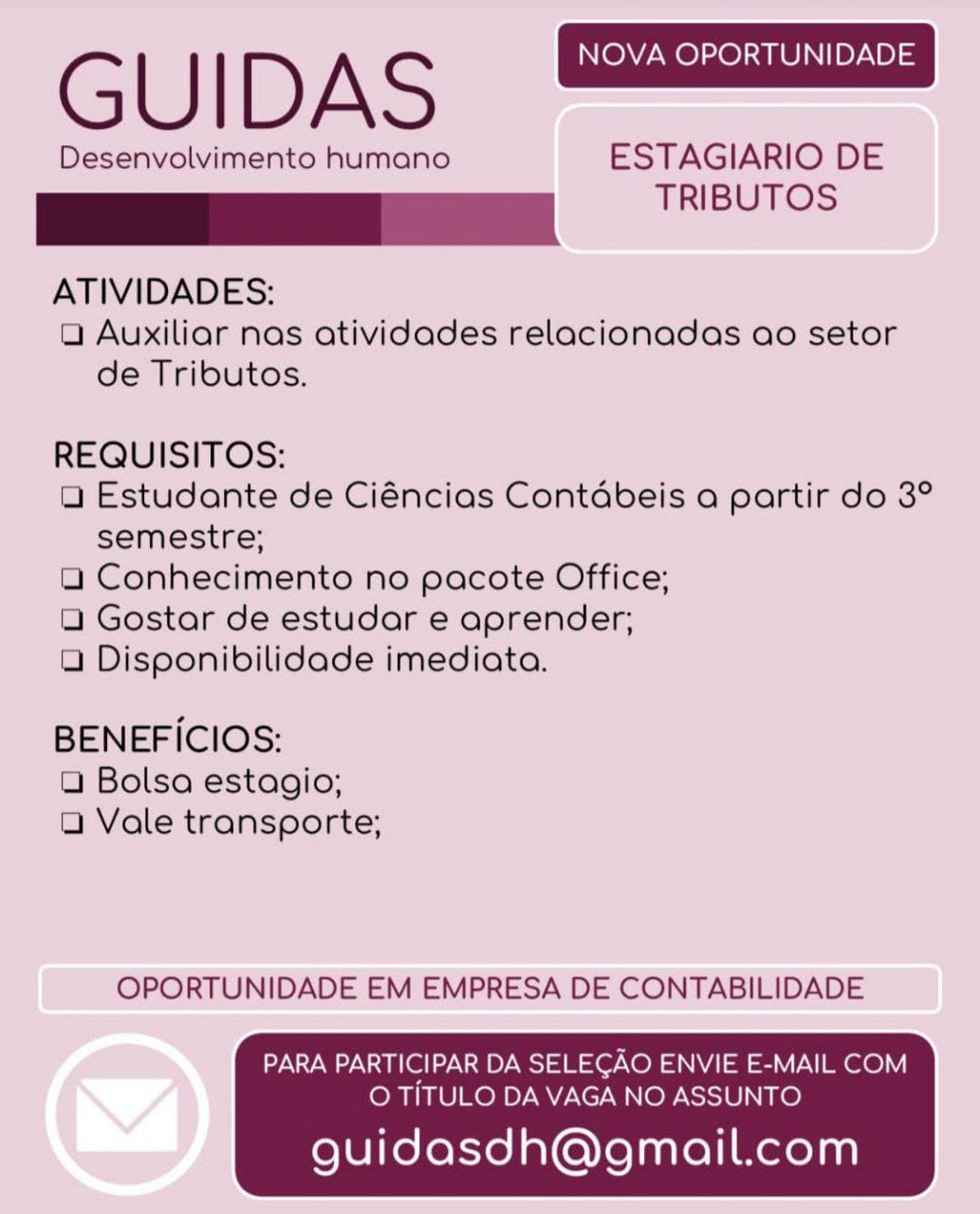 Estagiário de Tributos, Supervisor de Tributos, Auxiliar de Tributos