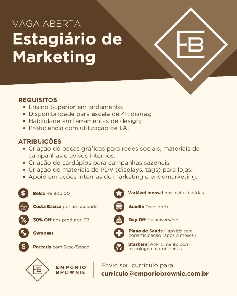 Estágio em Enfermagem, Monitor de Informática, Vendedor(a) de Loja , Auxiliar de Saúde Bucal, Analista de Compliance, Churrasqueiro, Técnico em Segurança do Trabalho, Estágio em Marketing, Estágio em Jornalismo, Analista de Contas a Pagar Pleno
