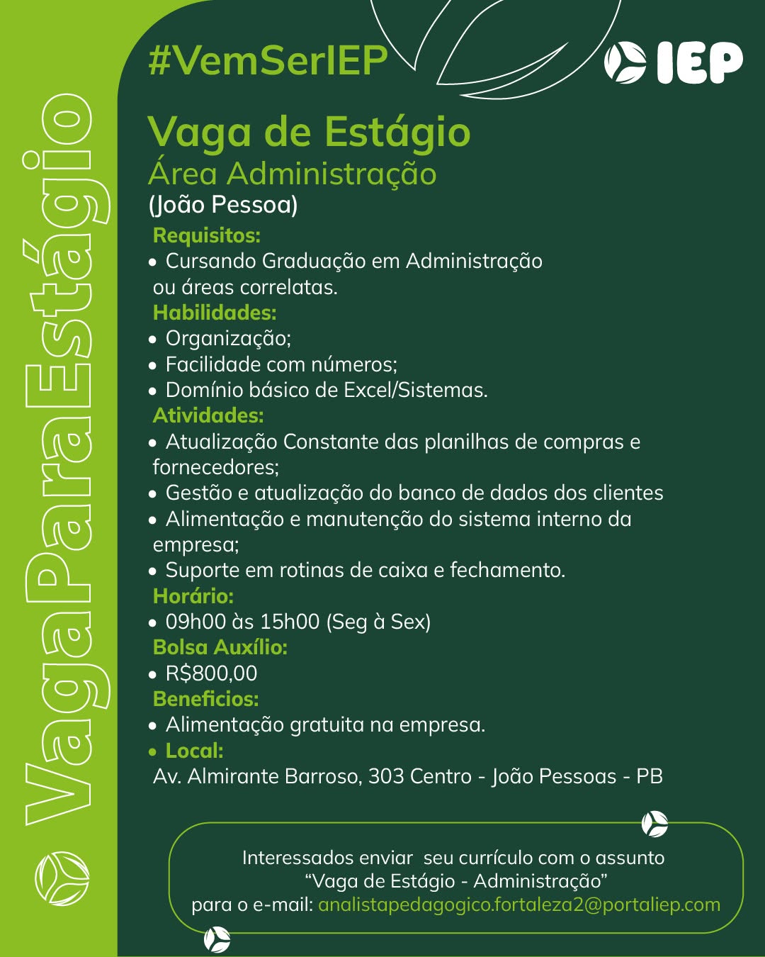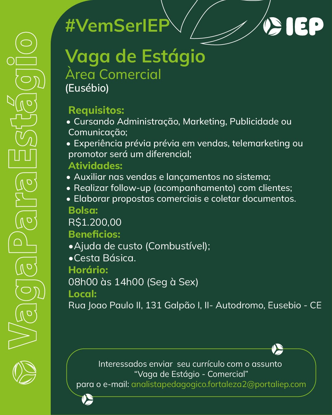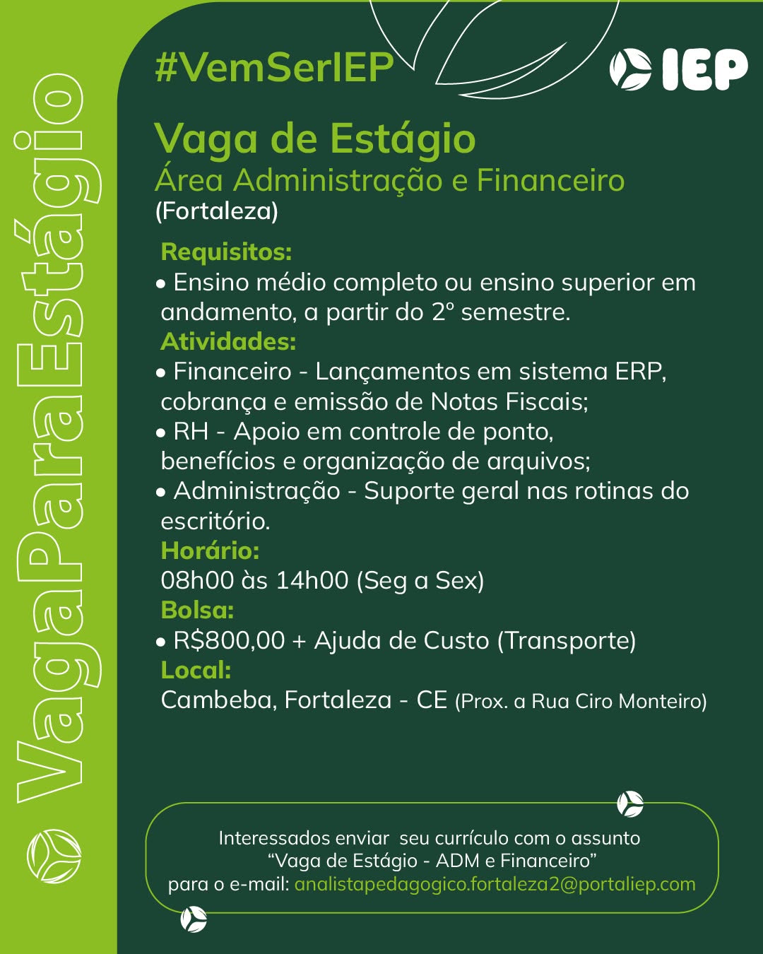 Estágio em Informática, Assistente Administrativo, Estágio em Administração, Estágio em Administração e Financeiro, Estágio Comercial