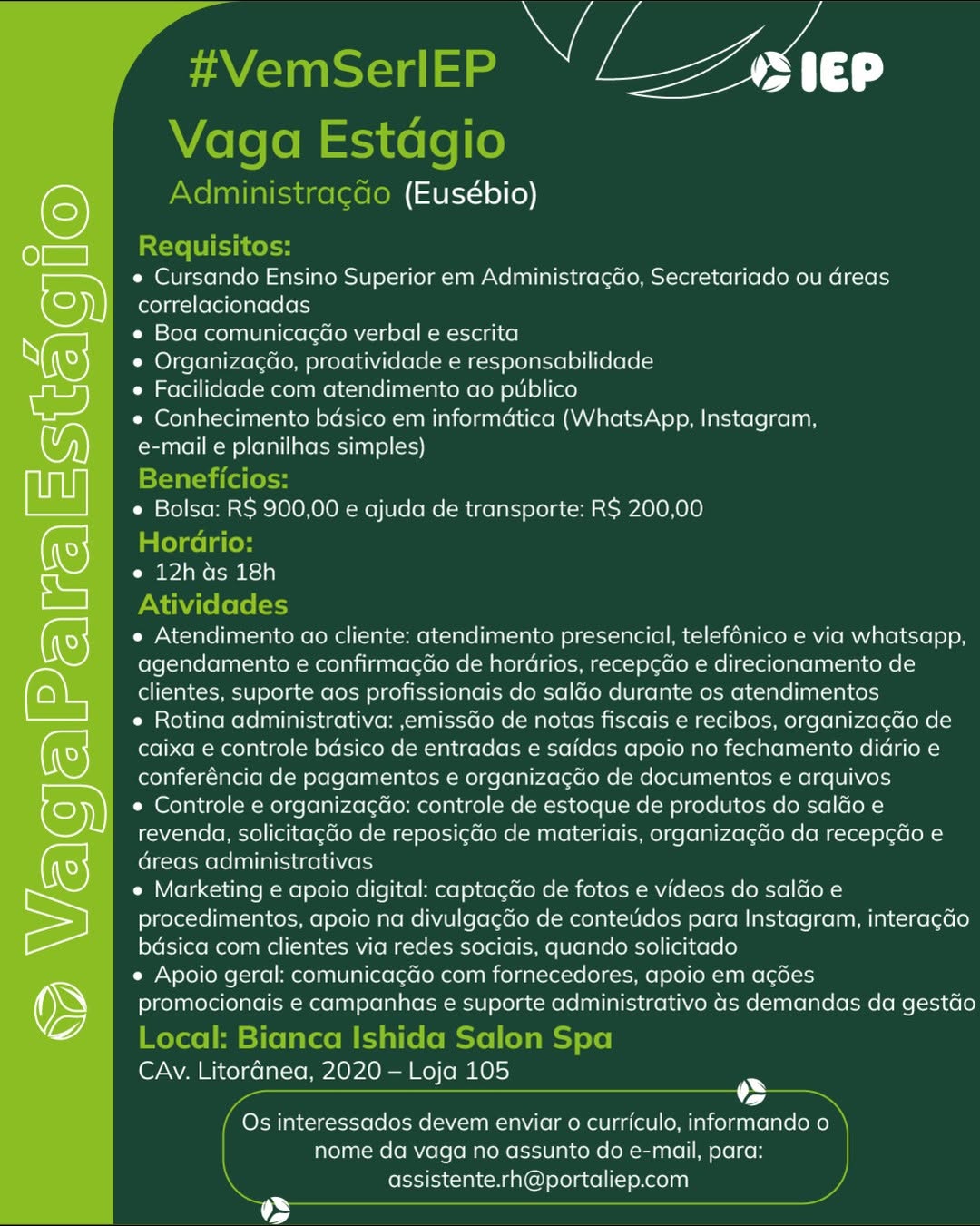 Estágio em Setor de Serviço, Auxiliar de Atendimento, Estágio em Administração