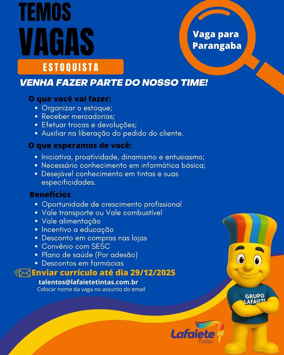 Nós não somos agência de empregos, não cobramos nada, nem antes e nem depois de você conseguir o seu emprego. Não somos nós que realizamos a seleção de currículos, também não realizamos entrevistas. Não nos responsabilizamos pelo envio de currículos. O envio de currículo deverá ser realizado pela pessoa interessada no e-mail que estiver na vaga.