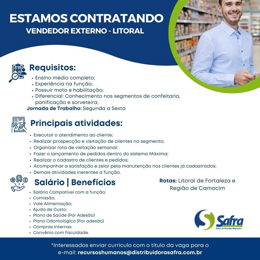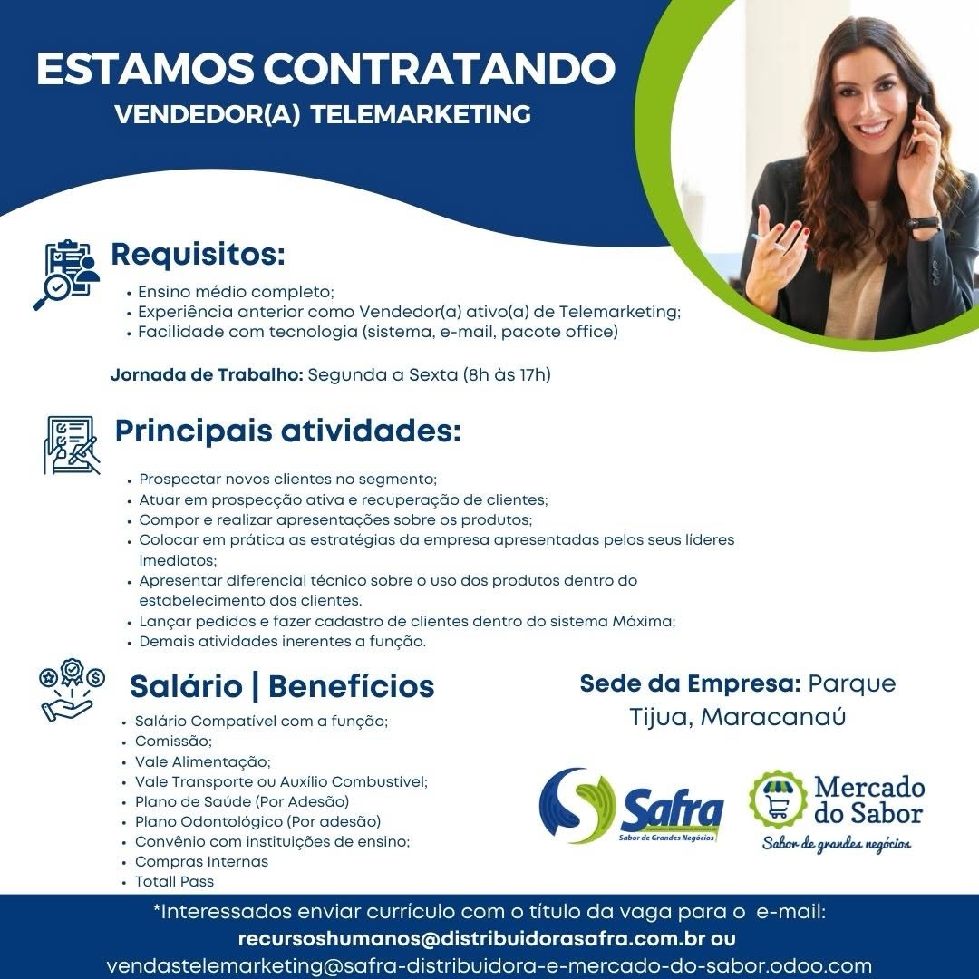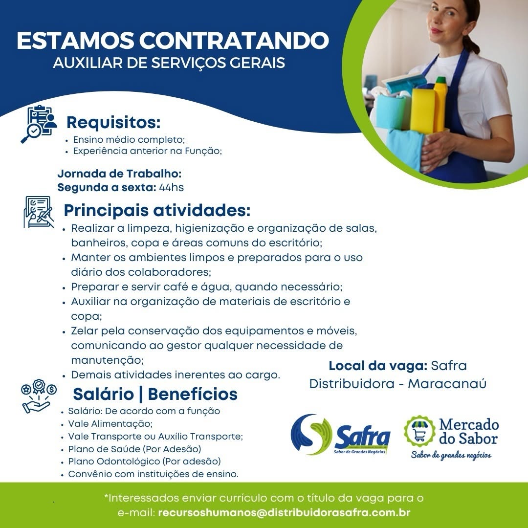 Estoquista, Visual Merchandising, Assistente de Loja, Promotor(a) de Vendas, Vendedor(a) Telemarketing, Assistente de Frota, Vendedor Externo, Auxiliar de Serviços Gerais