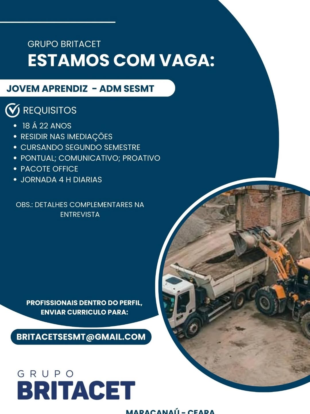 Jovem Aprendiz Administrativo, Jovem Aprendiz de Logística, Jovem Aprendiz de SESMT