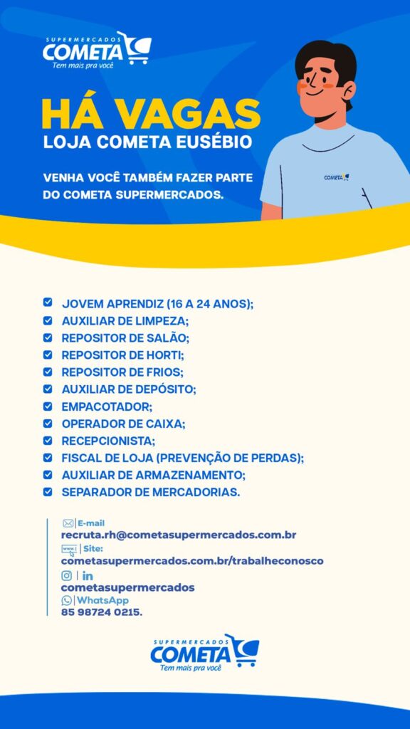 Jovem Aprendiz, Auxiliar de Limpeza, Repositor, Auxiliar de Depósito, Empacotador, Operador de Caixa, Recepcionista, Fiscal de Loja, Auxiliar de Armazenamento, Separador de Mercadorias