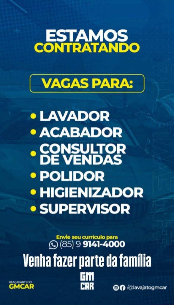 Lavador, Acabador, Consultor de Vendas, Polidor, Higienizador
