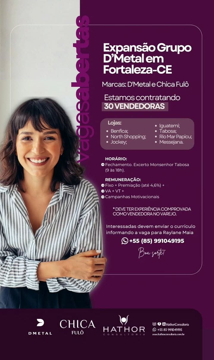 Loja abre 30 vagas para Vendedora em Fortaleza