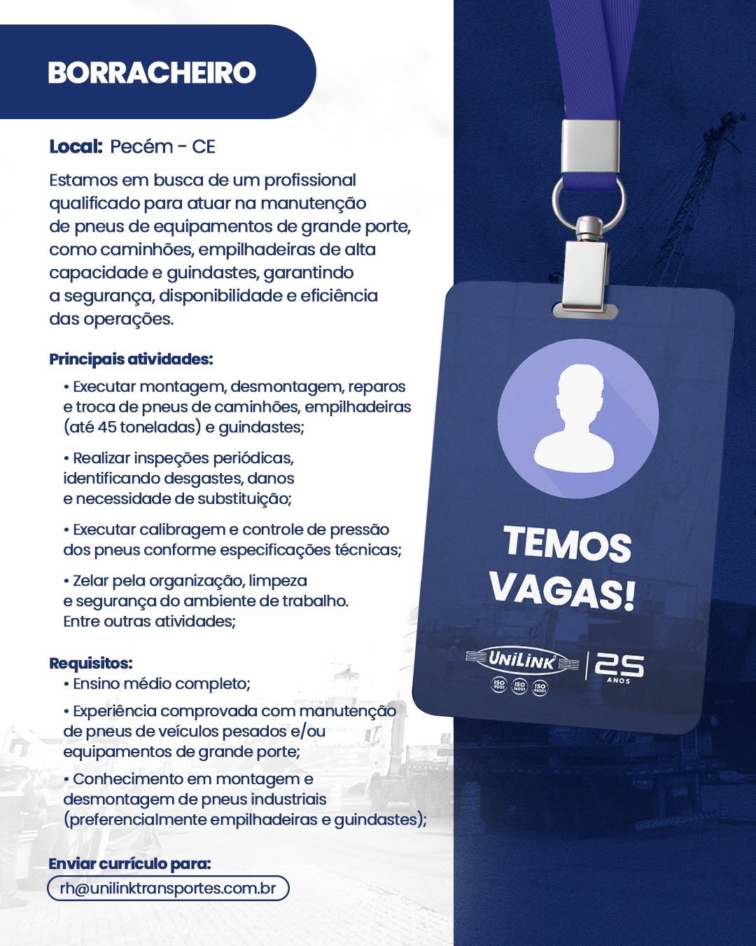 Não nos responsabilizamos pelas vagas, nem pelas informações fornecidas referente as mesmas, também não nos responsabilizamos pela idoneidade das empresas e instituições, apenas divulgamos as vagas que recebemos. Alertamos à buscar informações sobre as empresas que estão disponibilizando as vagas, através de contato por telefone ou e-mail divulgados nas mesmas, além de pesquisar na internet ou outros meios. Tome muito cuidado com locais (empresas ou instituições) que cobram taxas para garantir vagas ou para garantir uma colocação no mercado de trabalho. Esteja atento (a) a localização (endereço) da entrevista e do local de trabalho, se não conhecer ou achar que é um lugar isolado, vá com uma companhia ou não vá. Ter um emprego para garantir seu sustento e de sua família é importante, mas sua segurança e integridade também é, por isso, esteja atento. Se você é menor de idade vá acompanhado (a) de um (a) responsável.