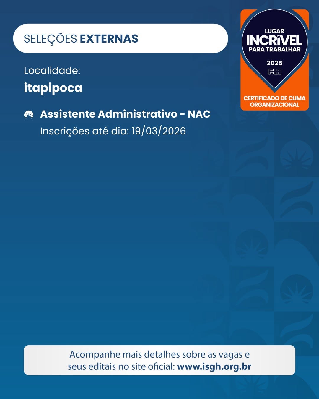 As vagas são divulgadas da mesma forma que recebemos. Não nos responsabilizamos pelas vagas, nem pelas informações fornecidas referente as mesmas, também não nos responsabilizamos pela idoneidade das empresas e instituições, apenas divulgamos as vagas que recebemos. Alertamos à buscar informações sobre as empresas que estão disponibilizando as vagas, através de contato por telefone ou e-mail divulgados nas mesmas, além de pesquisar na internet ou outros meios. Tome muito cuidado com locais (empresas ou instituições) que cobram taxas para garantir vagas ou para garantir uma colocação no mercado de trabalho. Esteja atento (a) a localização (endereço) da entrevista e do local de trabalho, se não conhecer ou achar que é um lugar isolado, vá com uma companhia ou não vá. Ter um emprego para garantir seu sustento e de sua família é importante, mas sua segurança e integridade também é, por isso, esteja atento. Se você é menor de idade vá acompanhado (a) de um (a) responsável.