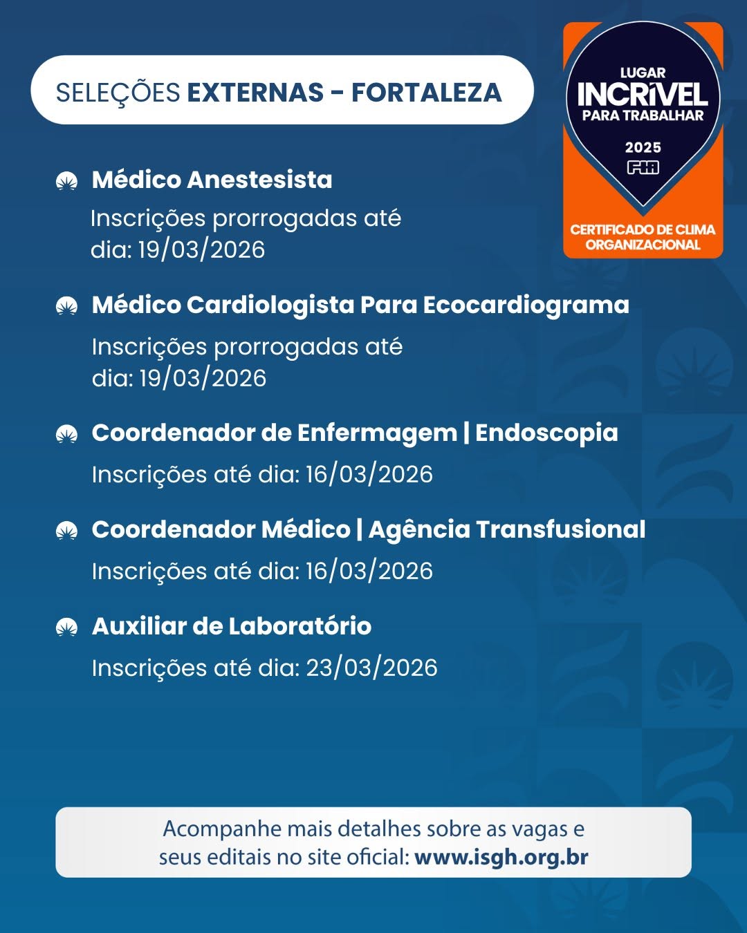 Médico Anestesista, Médico Cardiologista, Coordenador de Enfermagem, Coordenador Médico, Auxiliar de Laboratório